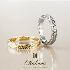 Hawaii is a paradise with endless blue seas, colorful flowers under the sun shining in the blue sky, and dark green plants sparkling in the gentle breeze. Makana is a Hawaiian jewelry bridal brand born from the beautiful nature of Hawaii. Makana, which means "gift" in Hawaiian, is selected from each item such as shape, width, material, design, etc., and has about 3000 variations. The main ring is made in Japan, and the engraving is hand-carved by a female craftsman in Hawaii.