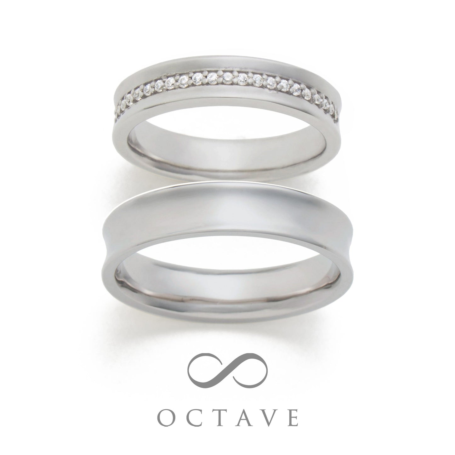 OCTAVE “Octave” is the scale of 8 notes of “Do Re Mi Fa So La Si Do” A semi-order bridal ring with a diamond of 0.08 ct and a wish of “eternity ∞” Bridal ring “OCTAVE” that plays eternal love May the love nurtured over the years continue May the two of us smile at all times May our thoughts resound forever 1 octave 1 octave May our future continue to shine endlessly