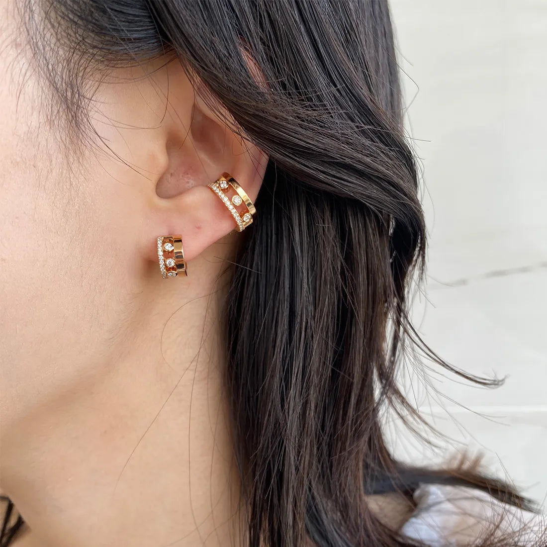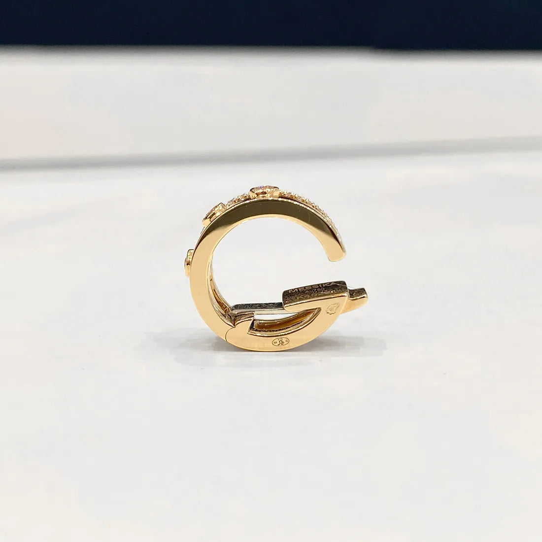 Ear clips became a big hit in no time and became a widespread fashion trend. Layer your diamond earrings for even more individuality, and your own style will bloom. To adorn the top of your ears, this pink gold and diamond ear clip from the Romane collection is perfect. Handcrafted and set with diamonds, this ear clip incorporates the Maison's iconic design.