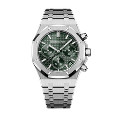 This 41mm chronograph takes Royal Oak's latest design evolution and combines a stainless steel case with a khaki "Grande Tapisserie" dial.