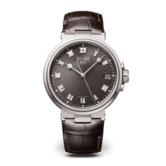 Dial: Gold with sunburst slate gray finish. Individually numbered and signed by Breguet. Luminous Roman numeral chapter ring and dot indexes. Gold luminous Breguet hands with facets. A center second hand inspired by the design of the marine code. Date display at 3 o'clock position.
