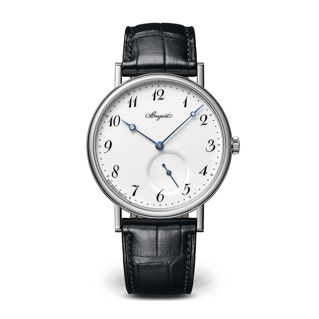 Lugs and screwed bars brazed to the case. Breguet signature. Chapter ring with Arabic or Roman numerals. Small seconds at 5 o'clock. Breguet hands in blued steel. Ultra-thin movement (2.4mm) |