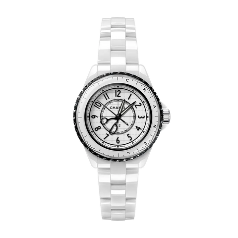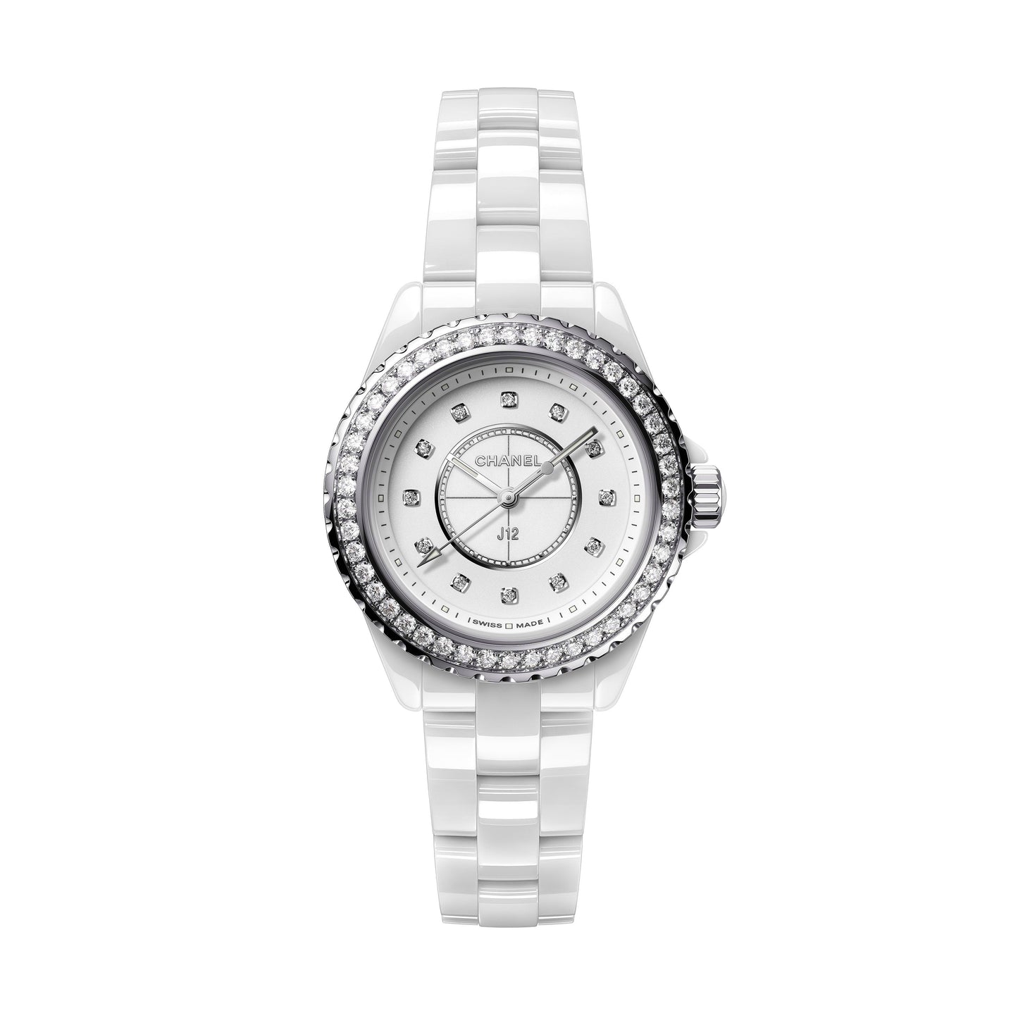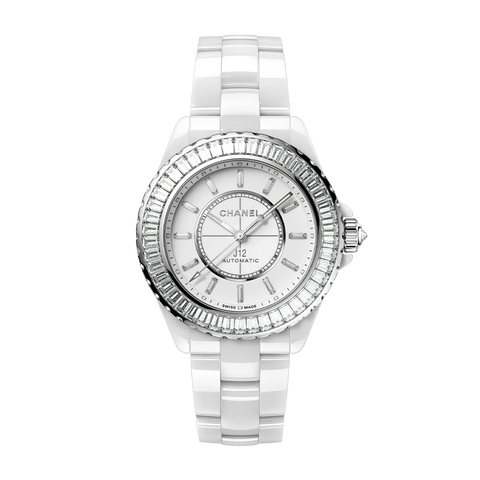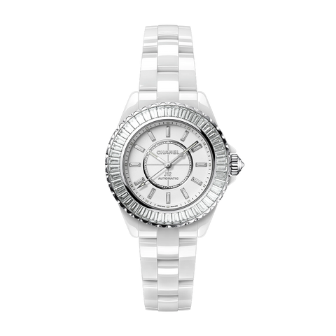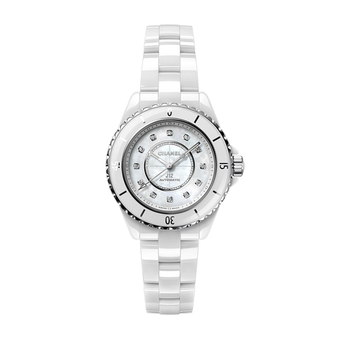 Dial: White lacquered dial with 12 diamond indexes (~0.06 carat) Crown: screw-down crown, stainless steel, highly resistant white ceramic cabochon <br>Bracelet: highly resistant white ceramic with stainless steel triple folding buckle |