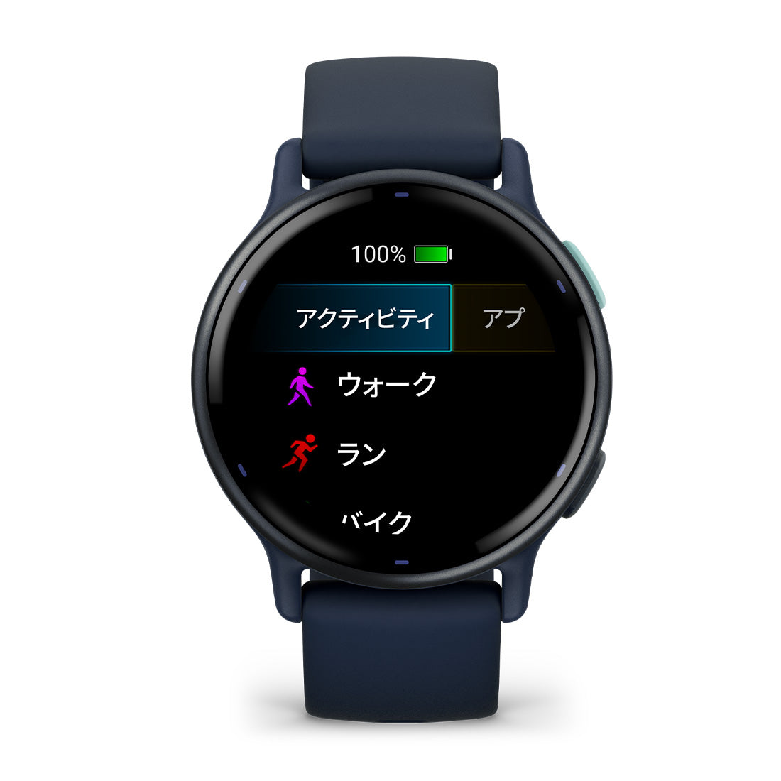 | その他特徴 | ●明るくカラフルなディスプレイ、さらにスマートウォッチモードでは最大 11 日間の長時間バッテリーによって、あなたの健康状態をより詳細に把握することができます。 ●Body Battery™(体のエネルギー残量モニタリング)は、睡眠、お昼寝、ストレスレベル、アクティビティなどに基づくさらなるパーソナライズされた洞察を提供し、いつ体のエネルギーが満ちているか、休息が必要かを理解するのに役立ちます。 ●睡眠スコアとパーソナライズされた睡眠コーチングにより、あなたに必要な睡眠時間や改善方法のヒント、さらに HRV ステータスなどの主要メトリクスを得ることができ、あなたの健康状態をより深く理解することができます。 ●ウォーキング、ランニング、サイクリング、HIIT、水泳、ゴルフなど、30種類以上の、屋内向けや GPS スポーツアプリが内蔵されているため、あなたが体を動かす新しい方法を見つけることができます ●車いすモードでは、歩数ではなく、プッシュを記録します。また、プッシュとハンドサイクルのアクティビティがプリロードされており、ストレングス、カーディオ、HIIT、ピラティス、ヨガのアニメーションワークアウト、車いすユーザーに特化したチャレンジなどがあります。 ●昼寝した際の自動検出と、その記録は、日中の昼寝の長さを追跡し、それが Body Battery エネルギーモニタリングなどにどのように影響するか、パーソナライズされた洞察の情報を提供します。 ●心拍数、モーニングレポート、フィットネス年齢、ストレスモニタリング、月経周期と妊娠のトラッキング、瞑想など、豊富なヘルスモニタリング機能によって自分の心身の状態をよりよく知ることができます。 ●それぞれのアクティビティが身体にどのような影響を与えるかを理解するのに役立つトレーニング効果や、体の回復に必要な時間などを知ることができる、リカバリータイムなどの高度なトレーニング機能によって、運動するモチベーションが上がります。 ●有酸素運動、ヨガ、ストレングス、HIIT、ピラティスなどのエクササイズ・アニメーションがプリロードされたワークアウトを使用したり、Garmin Connect™スマートフォン・アプリで独自のワークアウトを作成したり、Garmin Coach™ の無料アダプティブ・トレーニング・プランによって次のランニング・チャレンジに備えることができます。 ●Spotify、Amazon Music、Deezer のプレイリスト(プレミアム契約が必要)など、お気に入りの音楽をウオッチにダウンロードして、ワイヤレス・ヘッドフォンと接続することで音楽を楽しめます。 ●Garmin Pay のコンタクトレス決済(対応する国と決済ネットワークがある場合)により、外出先での支払いや、特定の交通機関での移動が可能となります。 ●セーフティ & トラッキング機能には互換性のあるスマートフォンに接続すると、選択した屋外アクティビティおよびアシスタント中の事故検出機能により、緊急連絡先にメッセージと現在地の位置情報が送信されます。 ●スマートウォッチ vivoactive 5 を Garmin Connect™スマートフォン・アプリと同期させると、あなたの健康状態やフィットネスデータの詳細、パーソナライズされたインサイトなどを、サブスクリプションなしに入手できます |