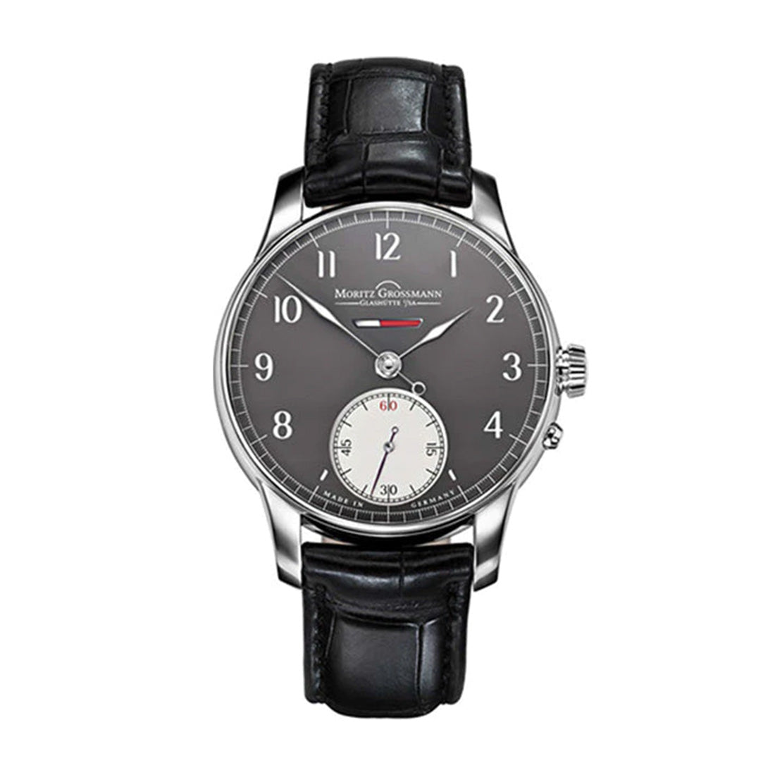 | ムーブメント | hand-rolled <br>Balance frequency: 18,000 vibrations/hour <br>Hours, minutes, small seconds with stop-second function, winding mechanism with Grossmann pusher, power reserve indicator |