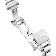 合わせられているのは、中央のコマをポリッシュで、外側のコマをブラッシュで仕上げた一体型ブレスレットです。スイス連邦計量・認定局(METAS)が認めた最高水準を誇るオメガ コーアクシャル マスター クロノメーター キャリバー 8800搭載。