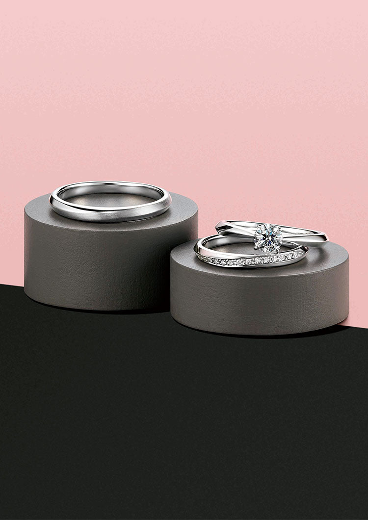 生涯、最も近くにいて寄り添ってくれるブライダルリングだからこそ、デザイン・プラチナ・ダイヤモンド・つけごこち・重ねづけの美しさのすべてに「心地よさ」を取り入れました。