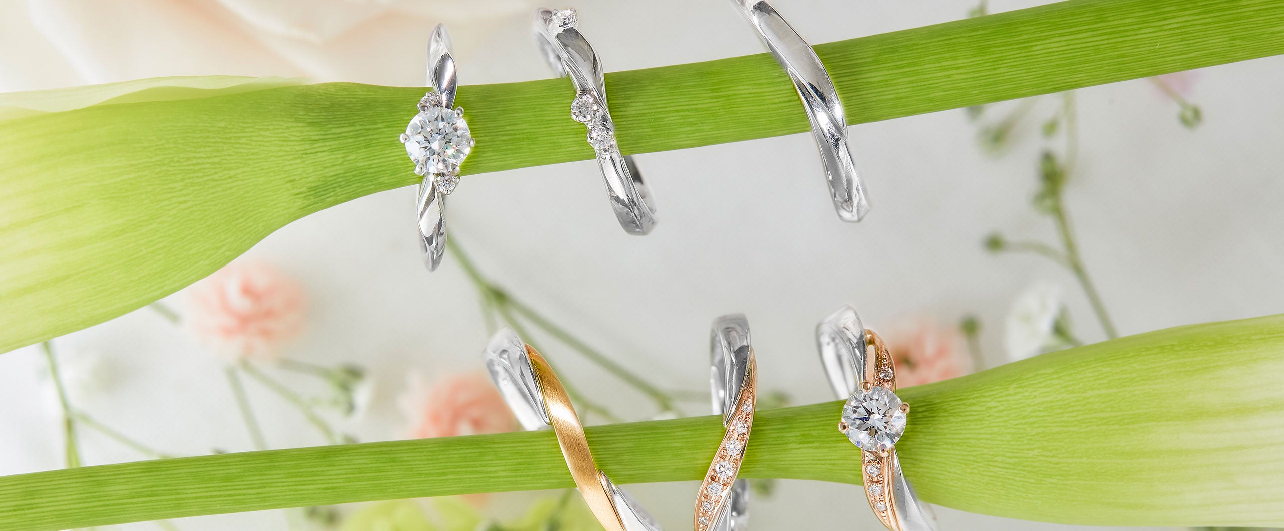 香川県内・四国でもここだけでしか見られない人気ブランドも 数多く取り揃えております。 「一生ものに相応しい品質のブライダルリングを提案したい」との想いから、国内人気ブランドはもちろん、海外老舗ブランドや今旬のブランドまで、本当に私たちがお客様に自信を持っておすすめしたいブランドを厳選してラインナップしております。 常時35ブランド、約4000本の多彩な指輪の中から実際にご試着いただき、それぞれのリングの着け心地などを体感いただくことで、セレクトショップならではの指輪選びをお楽しみいただけます。