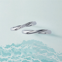 光り輝く海と青く澄んだ空のように、目の前に広がるふたりの未来。 その穏やかな海辺に吹く風をイメージした美しいブライダルリングです。 リングの内側には、穏やかな海辺をイメージしたブルーダイヤモンドが密やかに煌きます。