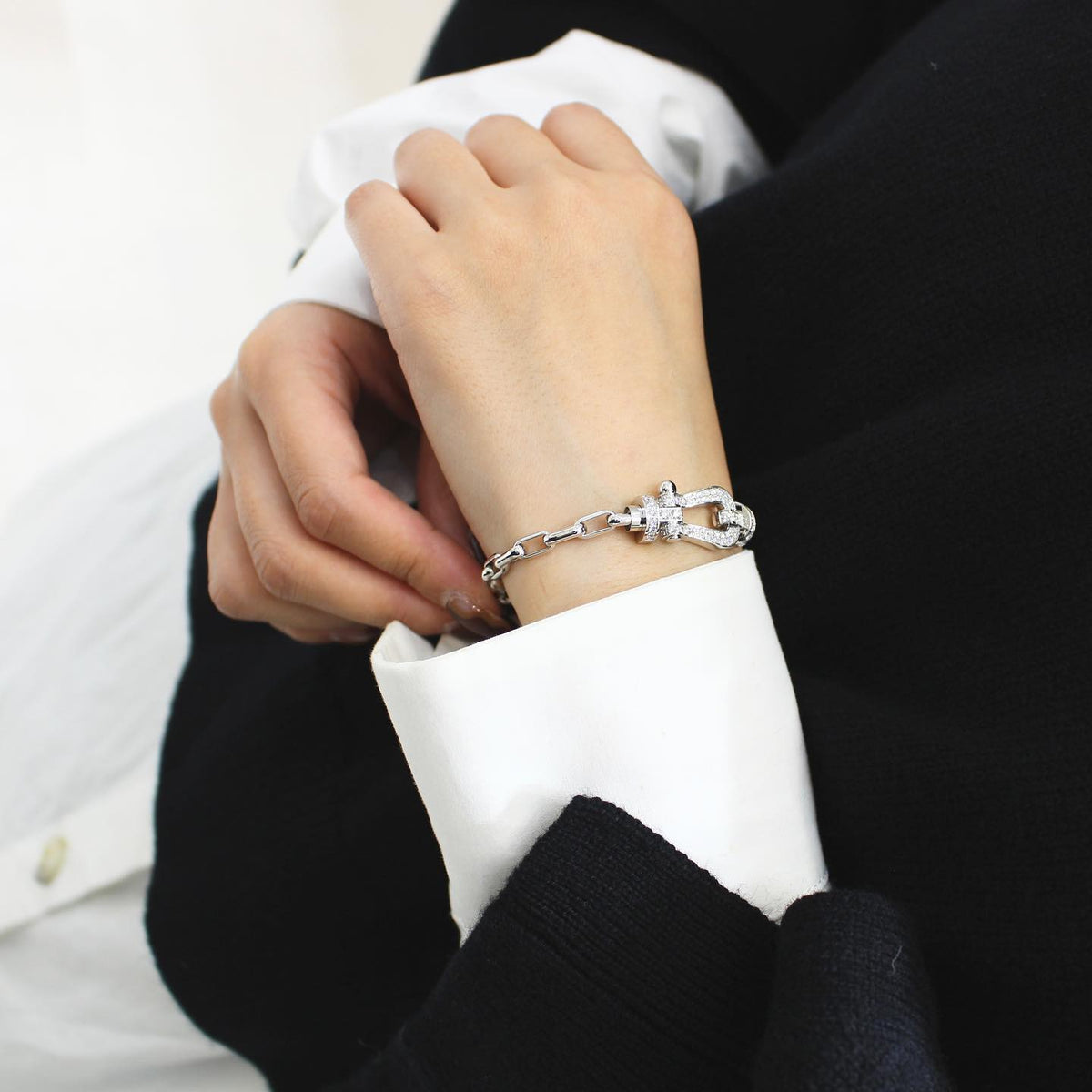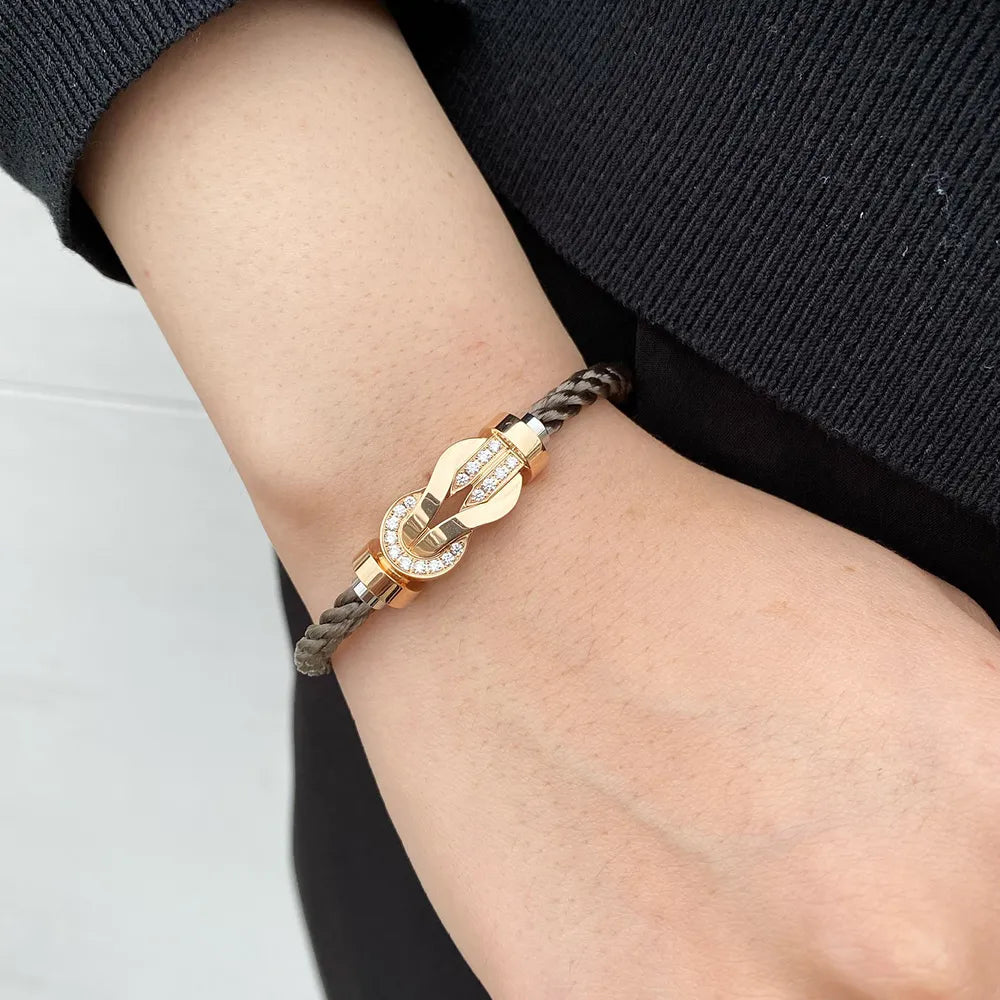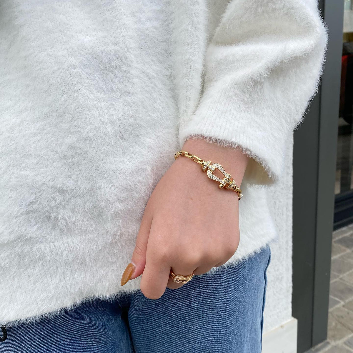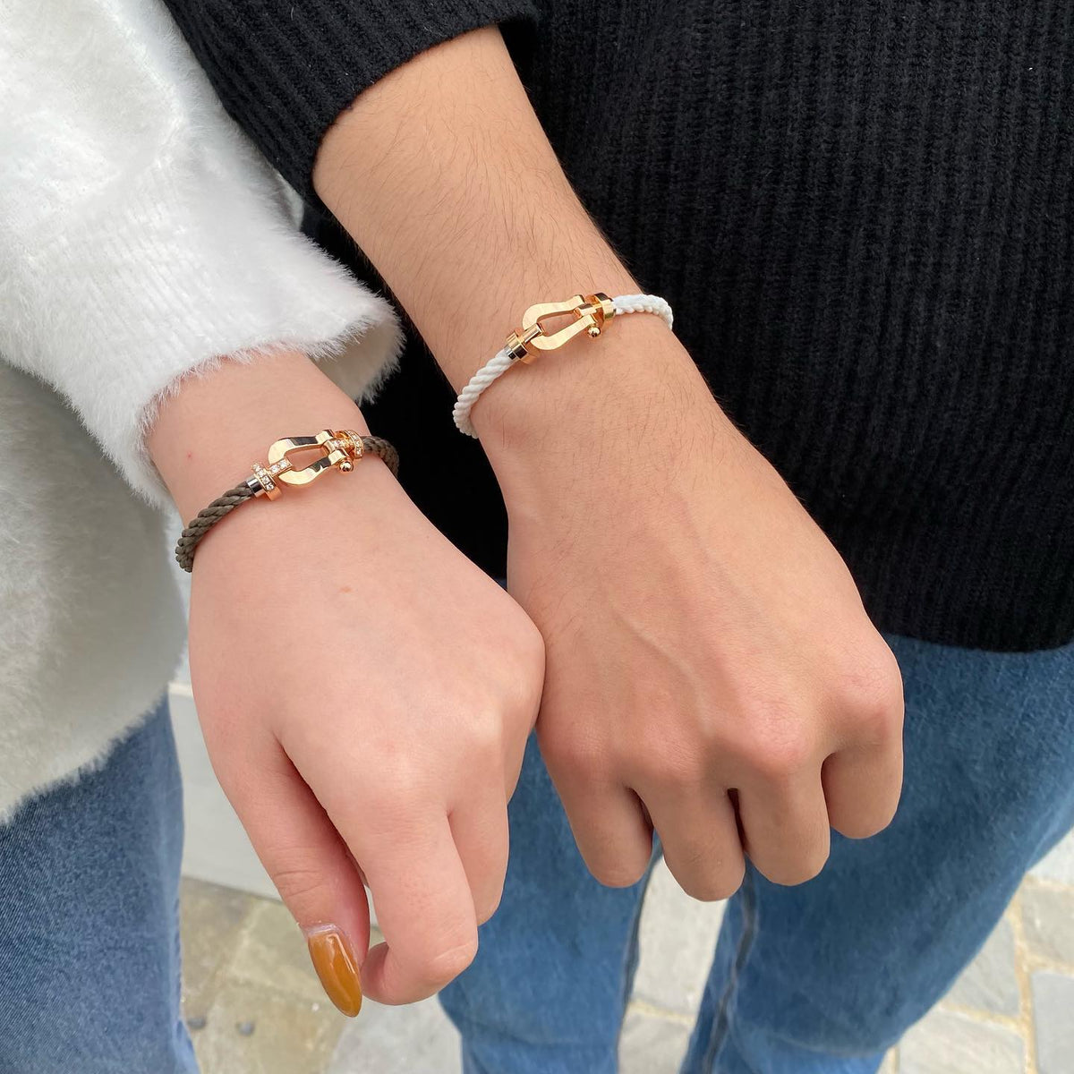 フォース10コレクションは、気分に合わせてどのようなスタイルにも合わせることができます。そのユニセックスな美しさゆえのタイムレスでモダンなアイテムは、ひとりひとりの個性にマッチします。これまで対極なものと考えられてきた、編み込んだスチールセーリングケーブルとゴールドバックルという素材の予期せぬ出会いを生み出すことで、フレッドはジュエリーの歴史にその名を刻むことになりました。アバンギャルドなインパクトを持つこのブレスレットは普段使いにも、特別な装いにもピッタリのアイテムとしてコレクションをインスパイアし続け、ブレスレット、リング、ネックレス、イヤリングのプレーンやダイヤモンド付き、さらにサングラスなど多彩なセレクションで男女問わず着用していただけます。原点となるクリエイティブな大胆さに、多様性とエネルギーに満ちた明るいカラーバリエーションも加えられています。