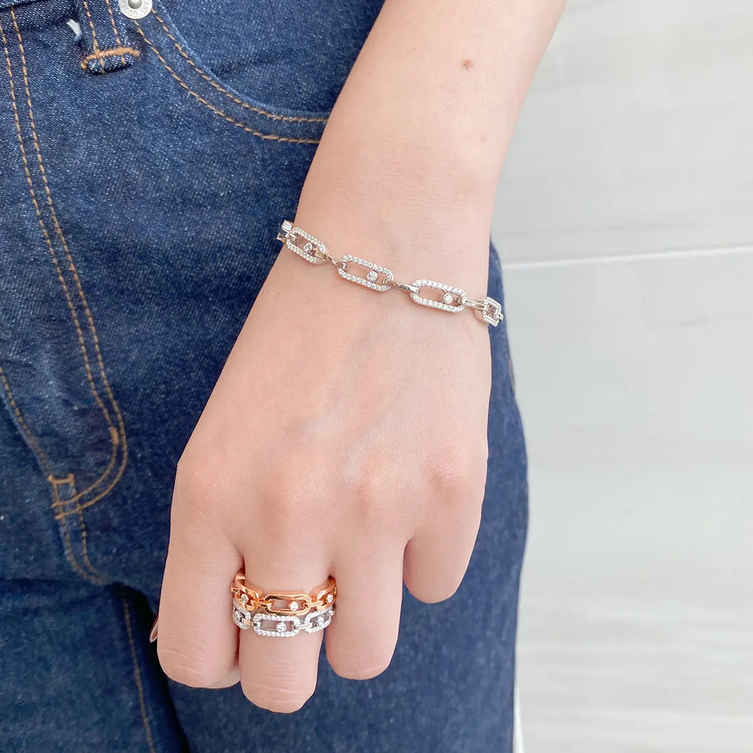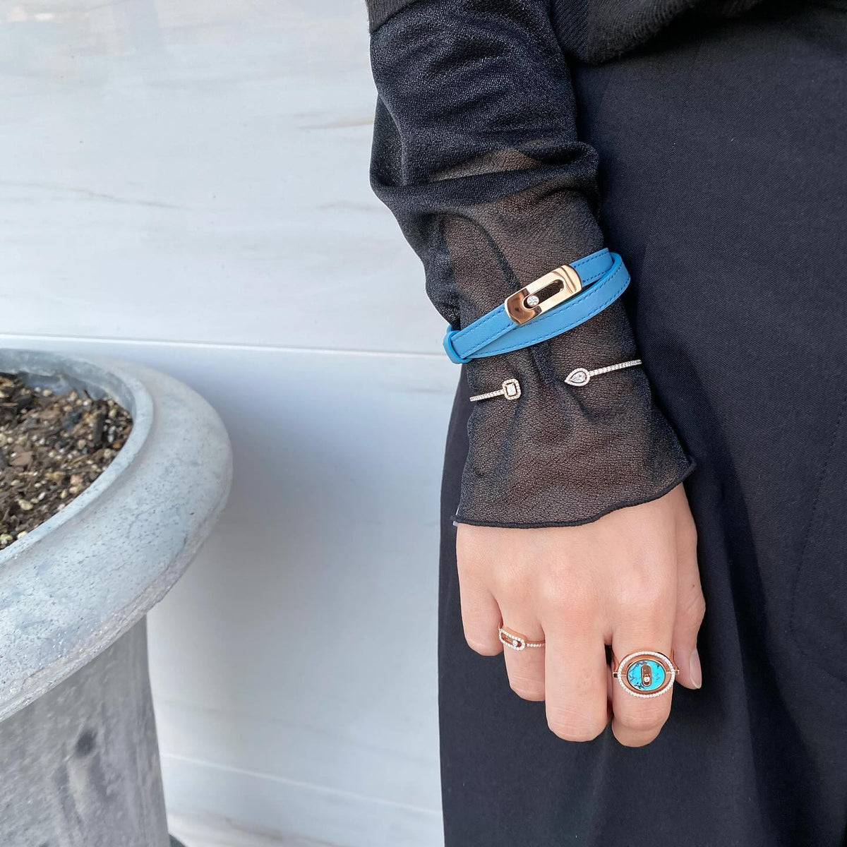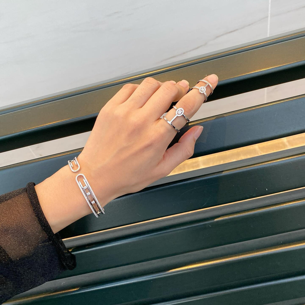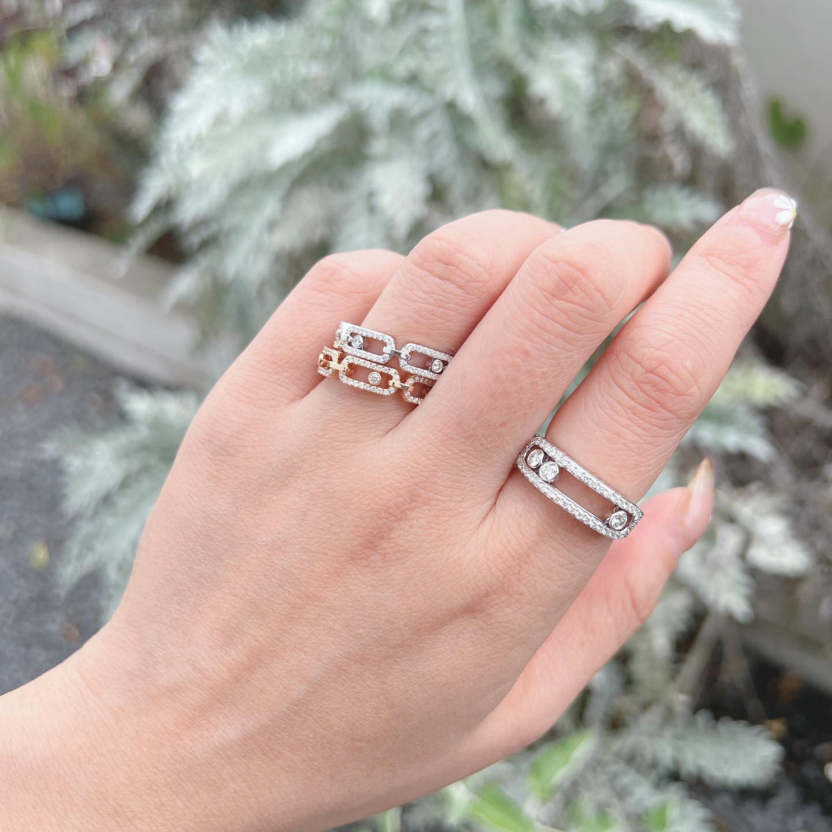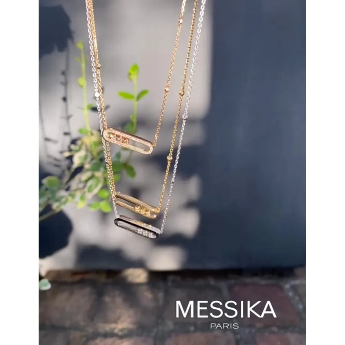 メシカ(MESSIKA)は、ヴァレリー・メシカが2005年に設立したフランス・パリのジュエリーブランド。身に着けることで、その人の個性や美しさを引き出せるようなジュエリーを提案しています。彼女が生み出すダイヤモンドのクオリティの高さと“身に着けていることを忘れるような”軽やかで現代的なデザインは、どんな女性にもフィットし、世界中のセレブリティをも魅了しています。 3つのダイヤモンドがフレームの中で自由に動く「ムーヴ コレクション」は、ひと目でメシカとわかるアイコニックなデザイン。 ダイヤモンドはそれぞれ、〝昨日・今日・明日の愛〟を象徴します。フレームから素肌が透けることで抜け感も演出してくれます。 素材はホワイトゴールド、ピンクゴールド、イエローゴールド、チタン素材でユニセックスに展開。毎日を共に過ごすかけがえのないパートナーになるはずです。