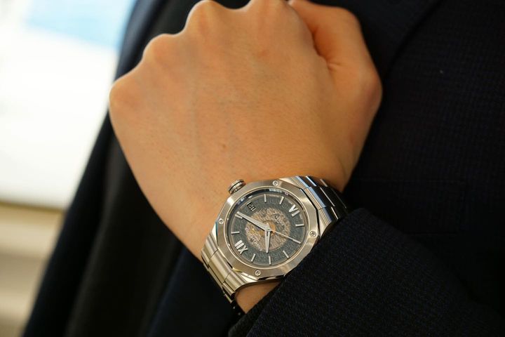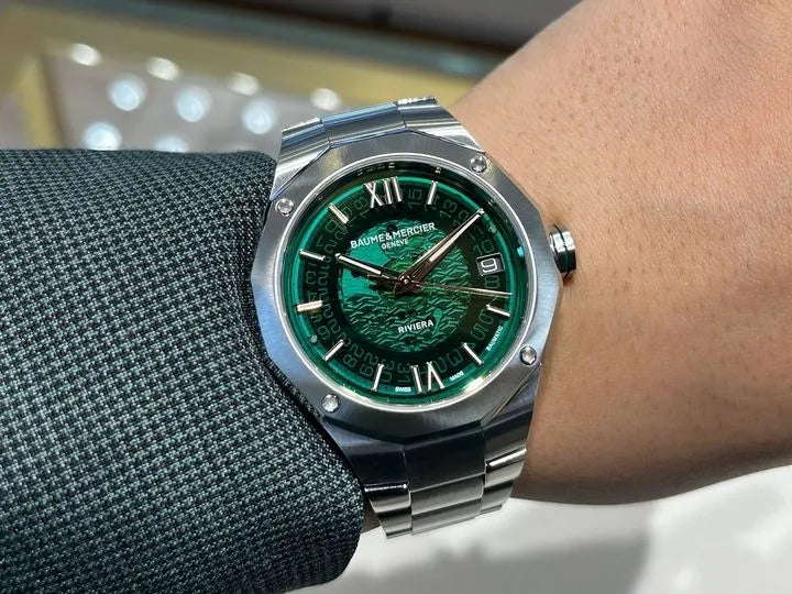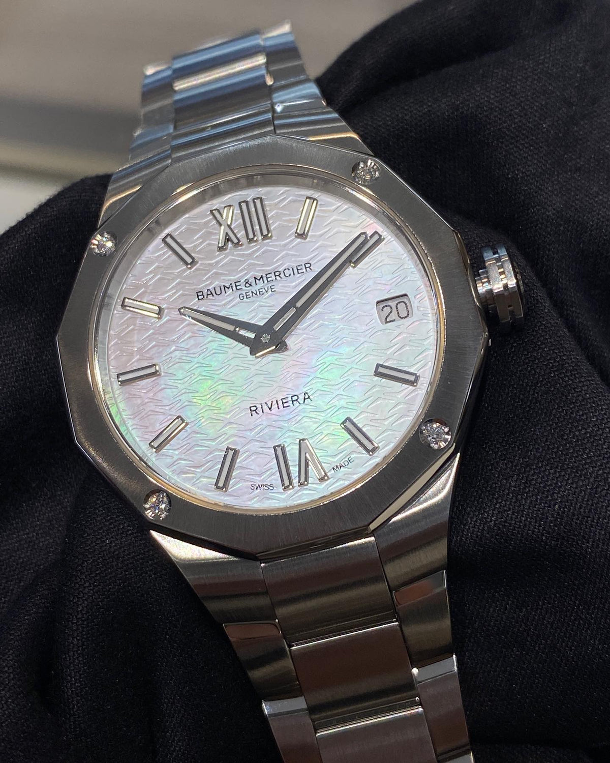 1973年に誕生した、12角形のベゼルが特徴的な「リビエラ」。 山、海、水しぶきをイメージした独特のウェーブ装飾がダイヤル上で華やかに表現されています。力強いシルエット、一風変わったエレガンスを楽しめます。
