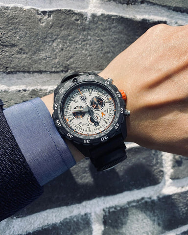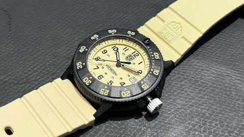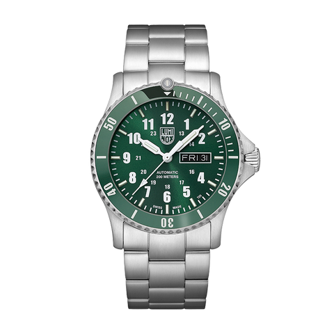 ネイビーシールズ軍事調達担当との共同開発により誕生したダイビングウォッチ。 昼夜を問わず発光し続ける自己発光型の「ルミノックス・ライト・テクノロジー(LLT)」は本格的なミリタリーの雰囲気に溢れています。