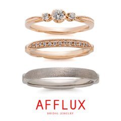 一組でも多くの幸せが続いてほしい。そんな想いからアフラックスの指輪には「幸せのおまじない」として「ゆびわ言葉」がつけられています。何気ない一言で喜んだり、感動したり、悲しくなったり...言葉は心を揺れ動かすもの。ふとした時に薬指を見てゆびわ言葉を思い出し、指輪選びをしていた頃を思い出してほしい。ふたりが大切にしたい言葉を「幸せのおまじない」として身に着けて下さい。また、アフラックスの指輪デザインは、理想の指輪を作ることができるオーダーメイドシステム。石のカラーや指輪の幅の変更など何万通りものアレンジが可能です。