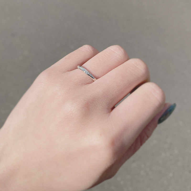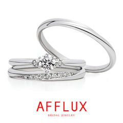 シンプルながらAFFLUXのこだわりが詰まったマリッジリング。ダイヤの留め位置をリング表面より低くデザインすることで、引っ掛かりがない着けやすいリングになっています。ゆびわ言葉には『真っ白なこれからを、ふたりだけの“しあわせ色”が彩っていきますように。』という想いが込められています。