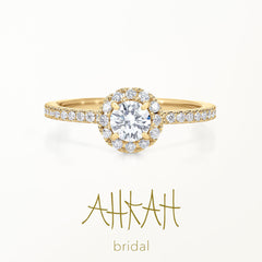 ヴィヴィアンブリリアンリングの華やかさはそのままに、重ねづけが可能になった新しいデザインが登場。中心のラウンドブリリアントカットダイヤをメレダイヤで取り巻いた、重層的な煌めきが美しいエンゲージリングです。