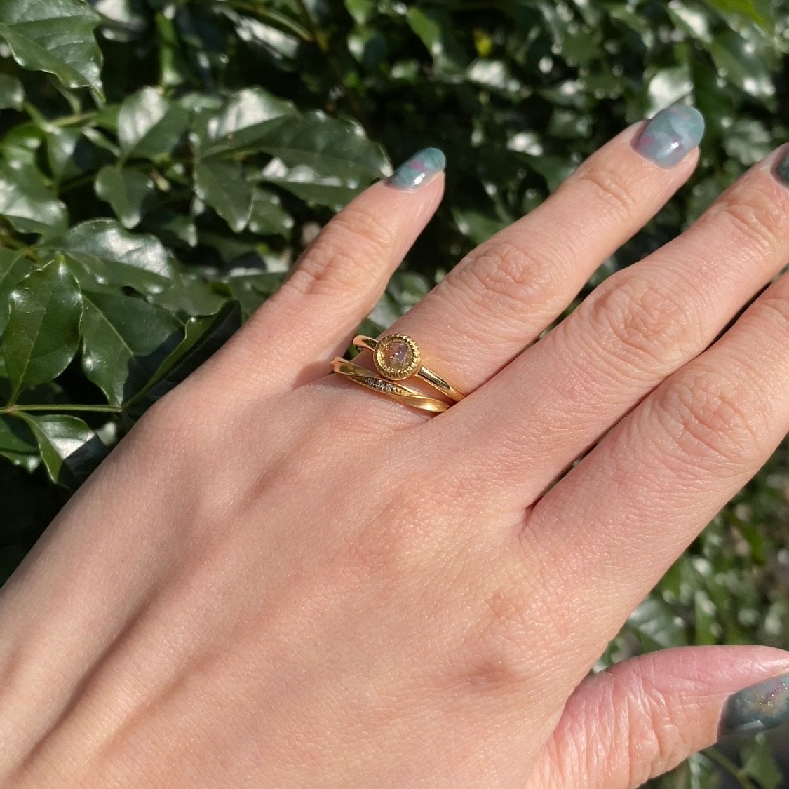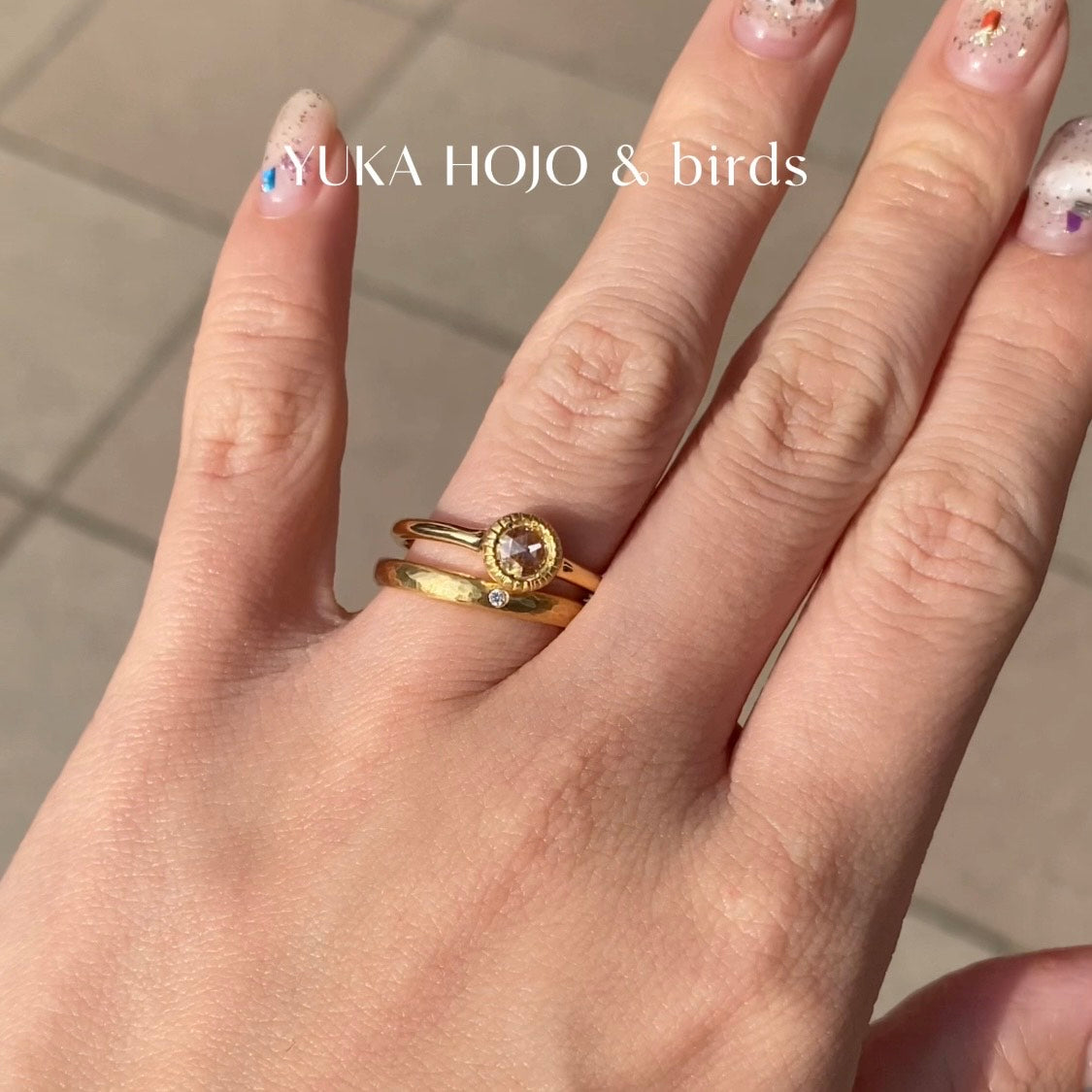 《YUKA HOJO & birds》「YUKA HOJO」と「birds」の婚約指輪と結婚指輪をそれぞれ重ねて着用してみました!✨️