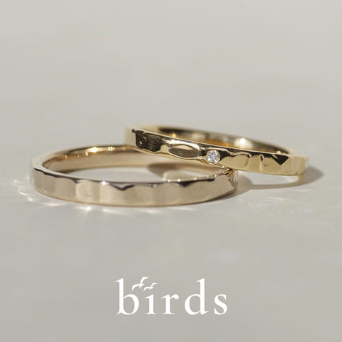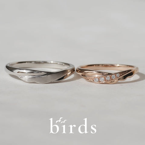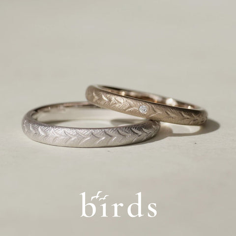 この自由な空で、 逢いたいと思うのは ただひとり 風のように軽やかに、 自由な空を羽ばたくおふたりの幸せな未来を かたちにしたいと想いを込めて、 ブライダルリングをおつくりしました。 ひとつひとつの指輪に込めた想いやストーリーを 形やテクスチャーに込めてデザインし、 アトリエで原型を手づくりしています。 心地よく、 おふたりにそっと 寄り添い続けますように
