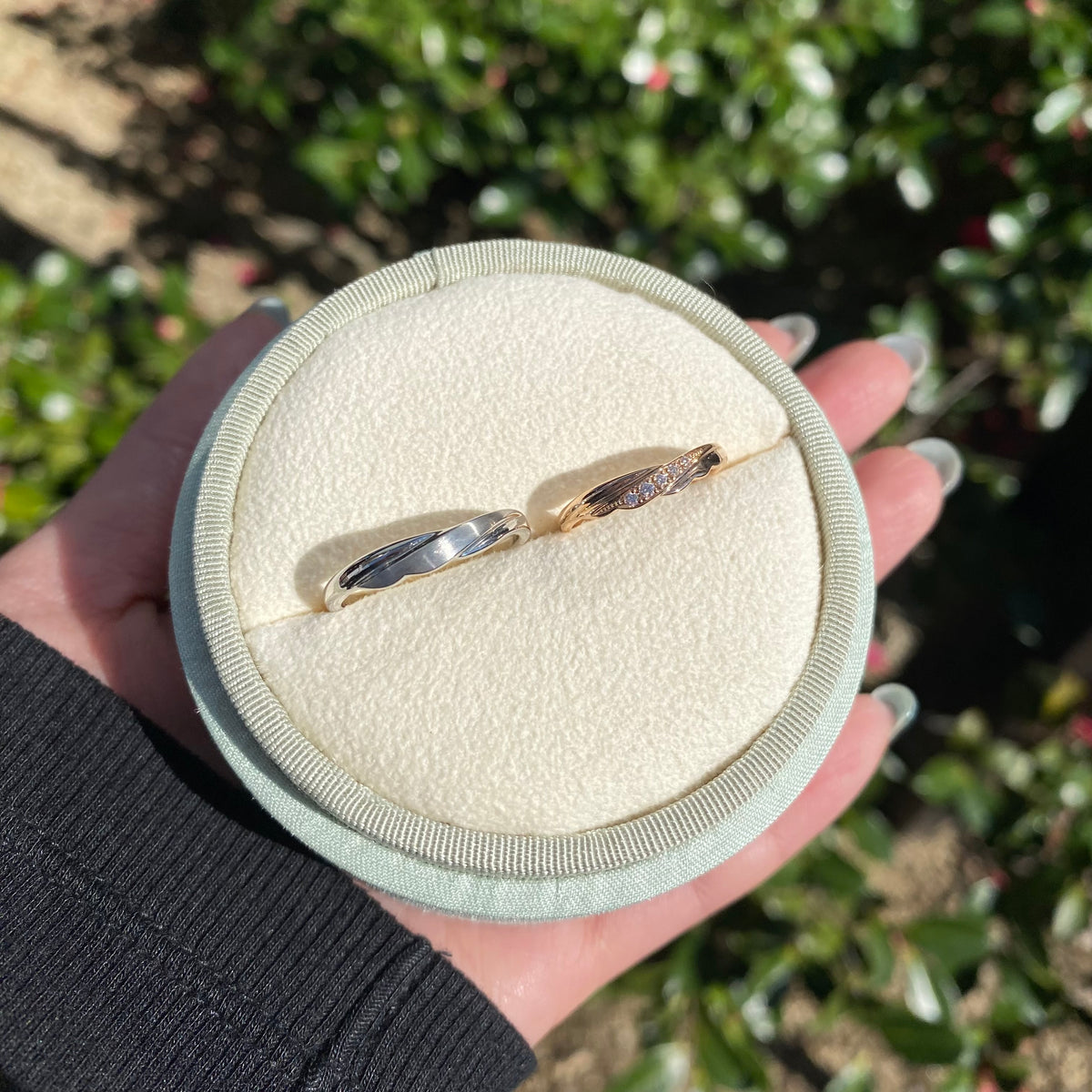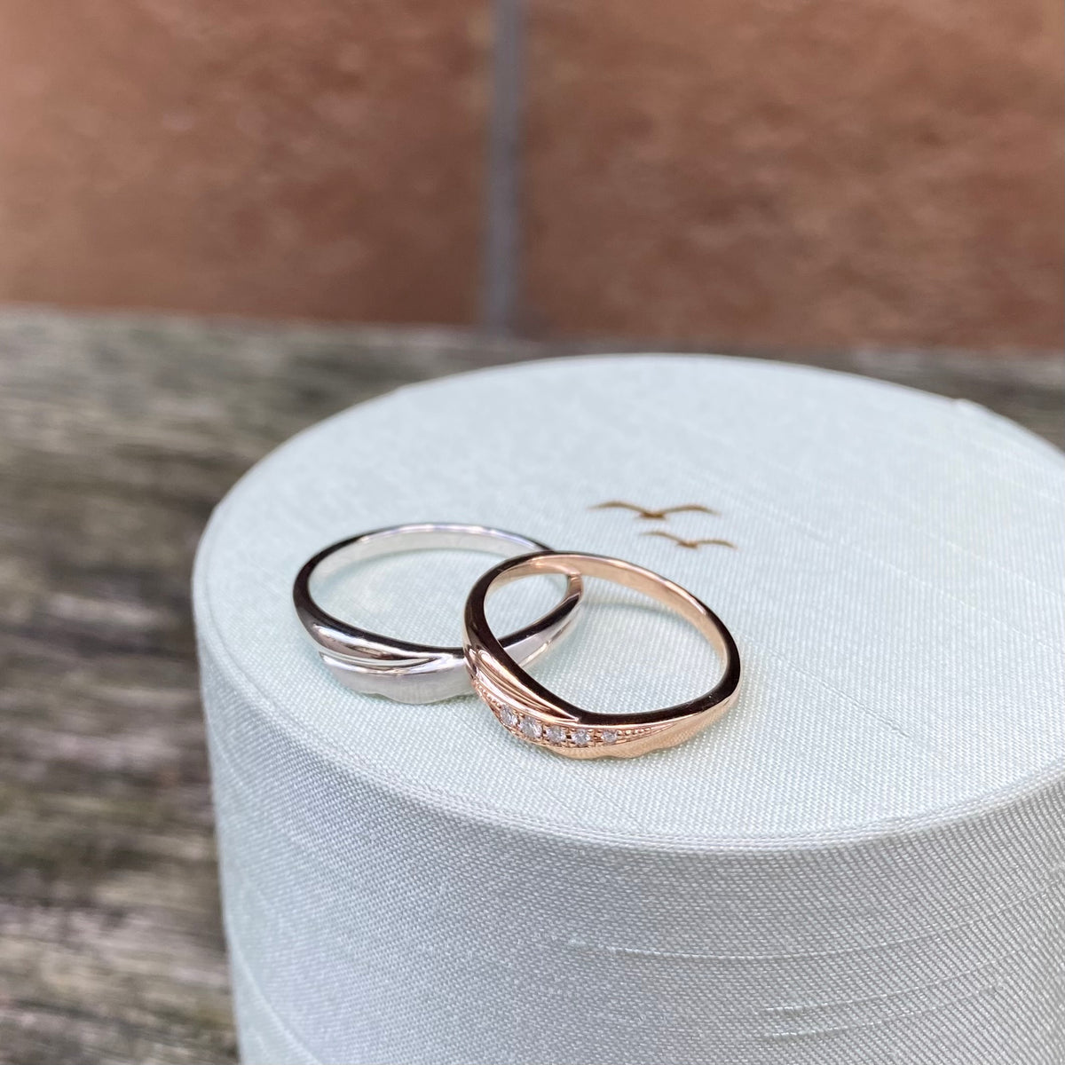 ペアで一対の翼となるような指輪を お作りしました。優しいぬくもりを、いつもそばに感じて。