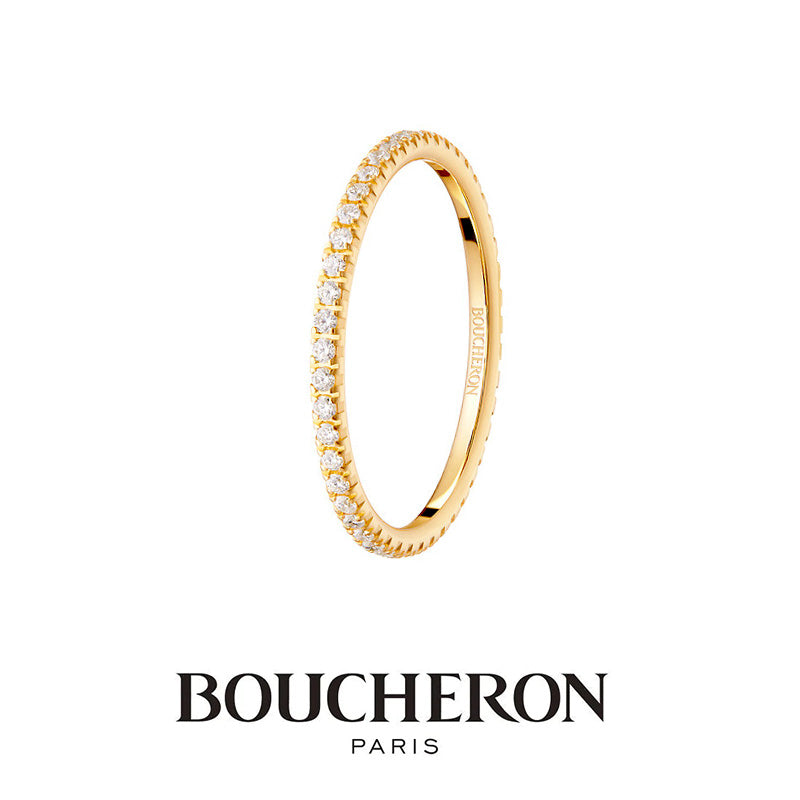 愛のジュエラーから受け継がれる愛のジュエリー「BOUCHERON」ファッションの聖地パリで160年以上も5大宝飾ブランドのひとつとして君臨する由緒あるハイジュエラーです。シンプルながらも、ひねりを加えたそのデザインは繊維業を営む家庭に生まれ育った創業者であるフレデリック・ブシュロンならでは。幼少期から慣れ親しんだレースやシルクのなめらかさをゴールドや宝石で表現。自由で独創的な発想のデザインで個性を出せるブライダルリングとして世界中の人々を虜にしています。