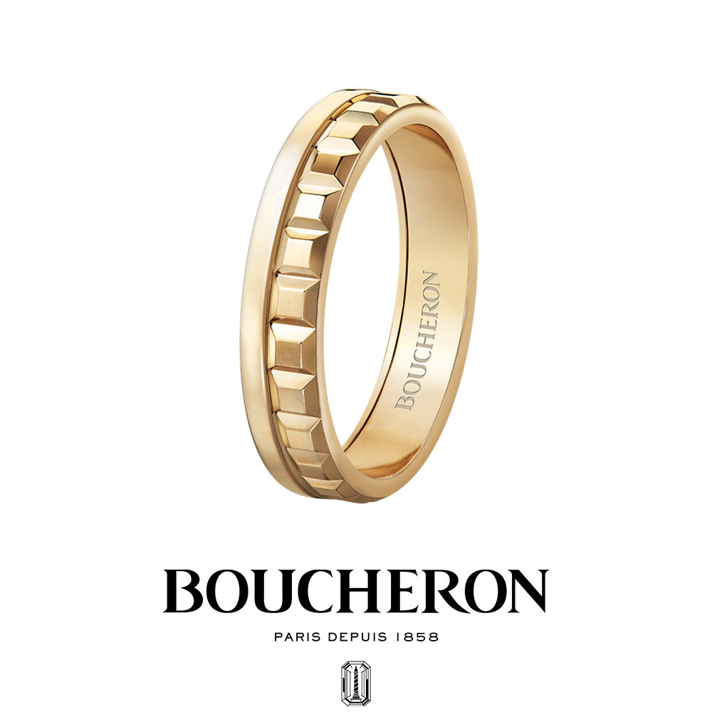 愛のジュエラーから受け継がれる愛のジュエリー「BOUCHERON」ファッションの聖地パリで160年以上も5大宝飾ブランドのひとつとして君臨する由緒あるハイジュエラーです。シンプルながらも、ひねりを加えたそのデザインは繊維業を営む家庭に生まれ育った創業者であるフレデリック・ブシュロンならでは。幼少期から慣れ親しんだレースやシルクのなめらかさをゴールドや宝石で表現。自由で独創的な発想のデザインで個性を出せるブライダルリングとして世界中の人々を虜にしています。