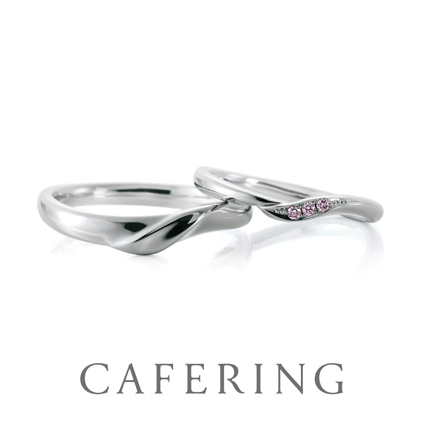 CAFERING のブライダルリングは、指が美しく見える上品で愛らしいデザインが特徴。毎日心地良くご愛用いただけるよう、「しなやかさ」と「軽やかさ」を大切におつくりしています。 婚約指輪では、センターダイヤモンドの石座を少し抑え目に、ひっかかりがないように設計。さらに、ダイヤモンドが最も美しい輝きを放つよう、ダイヤモンドを留めるプラチナの爪も熟練職人の技術により細部まで美しくデザインされています。 結婚指輪は、スタイルやお好みに合わせてデザインを選び、カスタマイズもできるので、男女問わずリング選びをお楽しみいただけます。