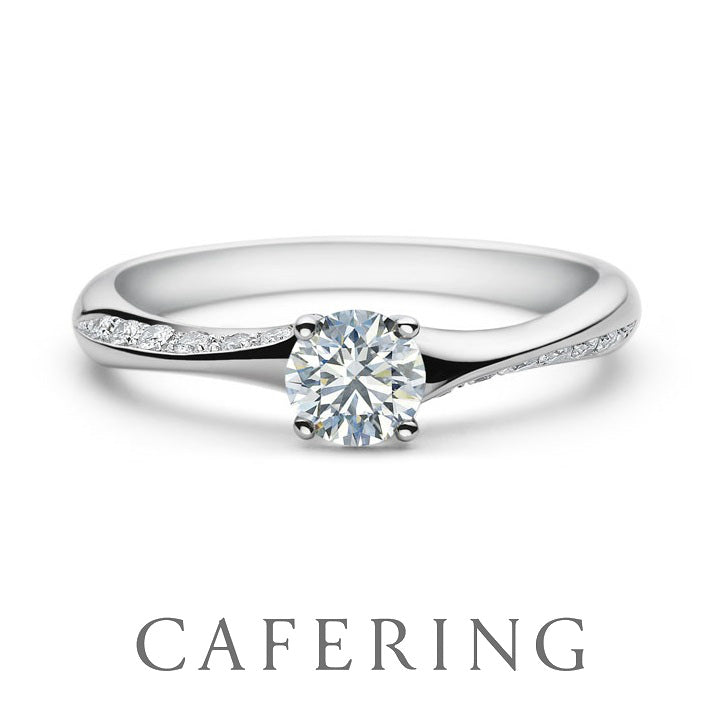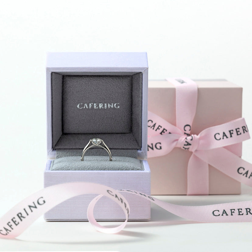 人生に幸福な輝きを添えるために。CAFERING のエンゲージリングは、日常生活の中でも気兼ねなく安心してお楽しみいただけるようにダイヤモンドの石座を低めにおつくりしています。