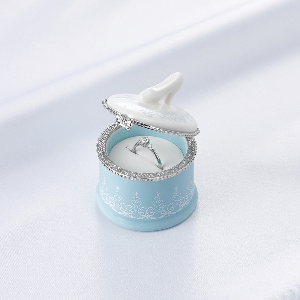 「信じていれば夢はかならず叶う・・・」 どんなにつらいことがあっても夢をあきらめず自分を信じ続けたシンデレラ。そして、シンデレラはその強い想いによって願いを叶えました。 『どんな困難でもあきらめないよう導き、夢を実現させる力』を持つと言われる「ブルートパーズ」は、まるで彼女の心のように清く澄んだ青色です。 美しく優しいシンデレラのような宝石「ブルートパーズ」を指輪の内側に秘めたディズニー シンデレラ 2023 ブライダルコレクション。
