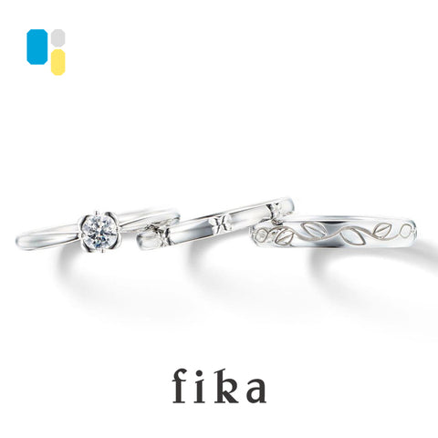 シンプルでいて、良質なものだけをさり気なく取り入れる無駄のない生活スタイル。 そして 北欧の優しい自然や「日常に感じる幸せ」を大切にするさり気ない豊かさ。 「シンプルで ナチュラルで 馴染むけど特徴的」 "fika"はそんな北欧テイストからヒントを得て生まれました。 耐久性 発色性に優れたゴールドや、見た目も美しい上質なプラチナ。そして「ふたりらしいスタイル」に仕上げていくカスタマイズデザイン。 "fika"は、実用性もデザインも兼ね備えたブライダルリングです。