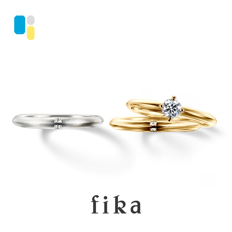 シンプルでいて、良質なものだけをさり気なく取り入れる無駄のない生活スタイル。 そして 北欧の優しい自然や「日常に感じる幸せ」を大切にするさり気ない豊かさ。 「シンプルで ナチュラルで 馴染むけど特徴的」 "fika"はそんな北欧テイストからヒントを得て生まれました。 耐久性 発色性に優れたゴールドや、見た目も美しい上質なプラチナ。そして「ふたりらしいスタイル」に仕上げていくカスタマイズデザイン。 "fika"は、実用性もデザインも兼ね備えたブライダルリングです。