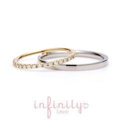 インフィニティラブ(infinity love)は『無限大の愛』という意味です。それぞれのリングデザインは、永遠や可能性・愛の絆という意味を持たせたテーマで描いています。 コンサバティブなプラチナが主流のブライダルリングの世界に、カラーゴールドの華やかさと繊細なアンティーク&フェミニンなデザインテイストをプラスした全く新しいウェディングリングです。インフィニティラブのリングには、リングのコンセプトを伝える名前があり、デザインも名前からインスパイアされています。