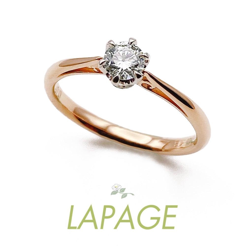 「ラパージュ」は歴史の始まり、歴史の1ページといった意味を持つフランス語「La page」から名付けられました。ふたりの絆の証としての結婚指輪。ふたりにとって、ふたりだけの大きな歴史の1ページ、祝福すべき歴史の始まりです。これからの幸せへの歴史を刻み込んでください。 そして日常の中、ふと薬指に「LAPAGE」の指輪を見た時、思い出してください。 「はじまりの1ページ」を・・・・。 パリのアトリエで生まれるラパージュ独自の優美な曲線と繊細さを併せ持つハイクオリティなコレクションは、多くの人を魅了し愛され続けています。