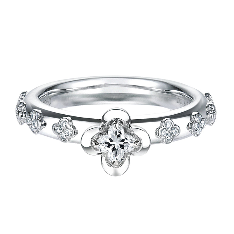 清楚に光輝くリリー(百合の花)は77面体。高品質な研磨をするためにはより大きな原石を必要とするため、世界一贅沢なダイヤモンドと言われるリリーダイヤモンド。両腕の厚みもあり、安定した着用感なので、大人花嫁にもぴったりです。