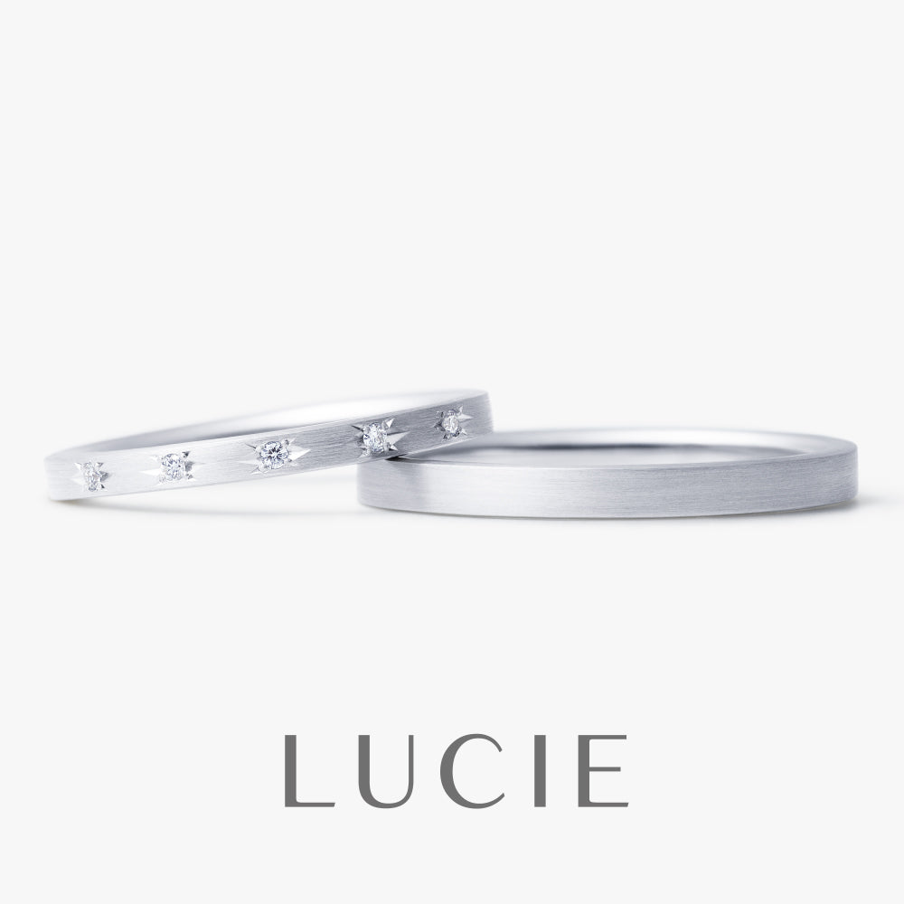 オートクチュール生まれの “LUCIE” ただ一人のためだけに作られる1点ものであるオートクチュールはフランスで生まれました。身に着ける人の美しさを引き出すために、一つ一つ丁寧な手作りを大切にする精神は今に受け継がれています。 LUCIE ブライダルジュエリーの特徴 オートクチュール生まれだからこそ、お好みのデザインをお二人の指に似合う形でご提案できます。女性と男性では手の形も好みも違うもの。女性は「指を長くみせたい」、男性は「さりげなくかっこよく着けたい」など、それぞれの希望を同時に叶えるリングにはなかなか出会えません。