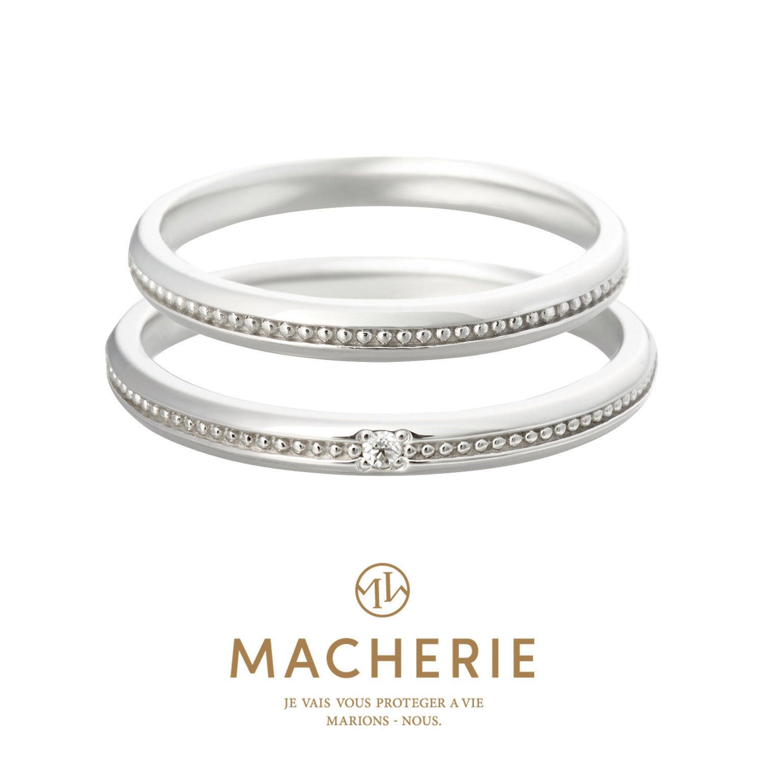 "言葉を贈るように指輪を贈る”はじめて出会ったころから毎日変わらないきもちでいること、隣にいるだけで心から安心できること、出会えたことが奇跡だと感じていること、あなたと家族になりたいと思えたことなど「マシェリ」のリングは最愛の人へ素直に伝えられない愛の言葉が込められています。指輪は毎日着けるからこそ傷や変形に強い素材で、いつまでも飽きのこない長く愛されるデザインを取り入れています。そしておふたりと共に時を重ねていくリングがいつまでも同じ輝きを放つよう、メンテナンスも充実しています。