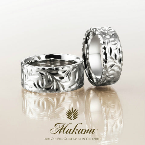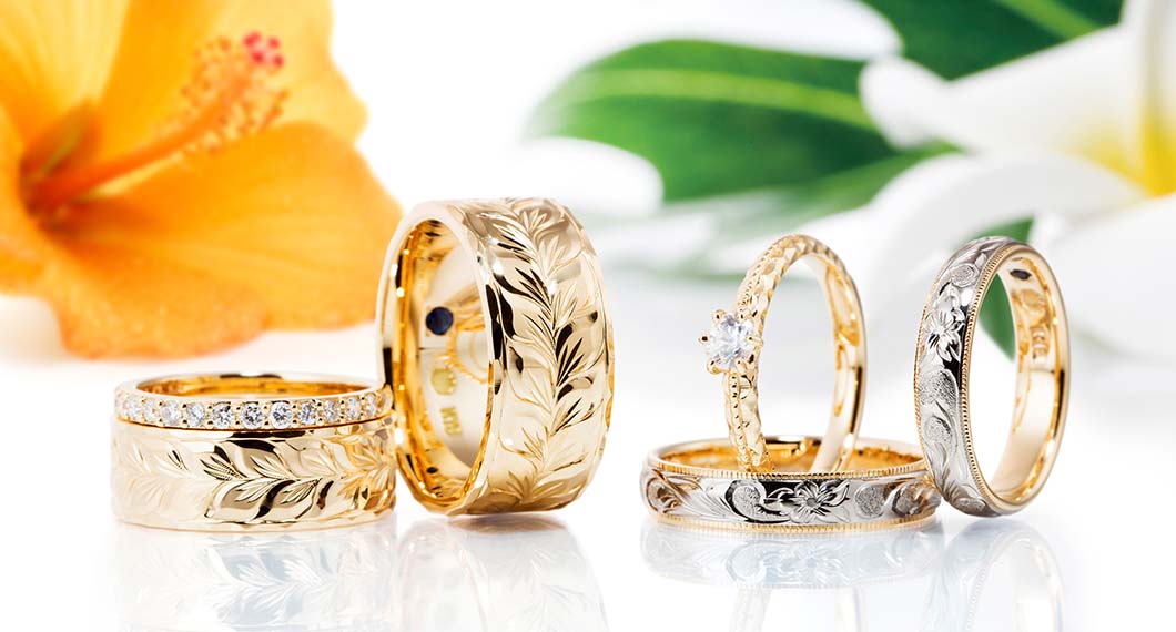 どこまでもつづく碧い海、青空に輝く太陽の下には色鮮やかな花々、そして優しい風に濃緑の草木がきらめく楽園ハワイ。 Makana“マカナ”はそんなハワイの美しい自然から誕生した、ハワイアンジュエリーのブライダルブランドです。 ハワイ語で“贈り物”の意味を持つマカナは、形状・幅・素材・デザインなどの各項目からセレクトし、約3000通りにも及ぶバリエーションを兼ね備えています。本体のリングは日本で作り、彫りはハワイで女性の職人が一人で手彫りしているため、着け心地の良さと本場の彫りを実現できる唯一無二のブランドです。