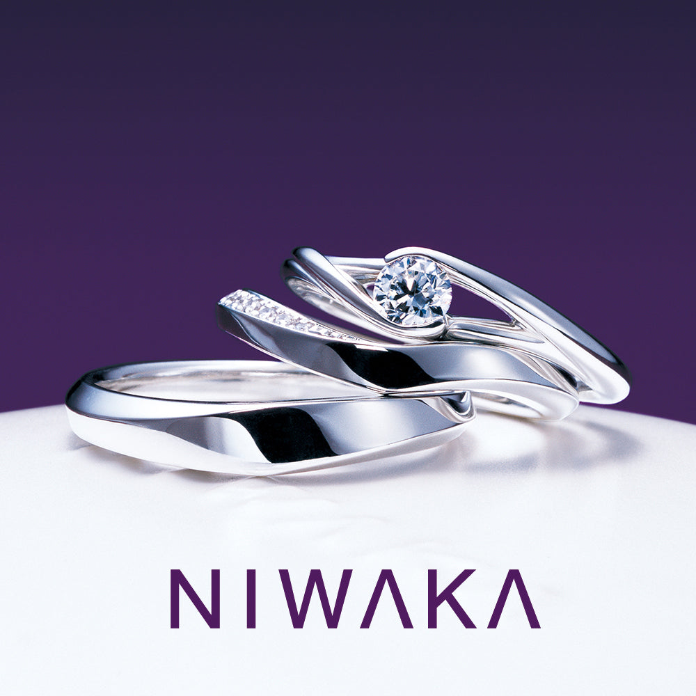 千二百年の歴史を持つ京都で誕生したNIWAKA。そこで育まれた感性から生み出されるジュエリーには、世界を魅了する日本の美意識が息づいています。 NIWAKAのすべてのリングにコンセプトと名前があり、それらがリングという小さな世界の中で緻密に表現されています。どの角度から見ても美しいリングのフォルム。洗練されたデザインに存在感ある輝きのダイアモンド。美しく重なる重ね着け。細部までのこだわりは、ハイジュエリーも手がけるジュエラーとしての誇りです。ふたりの描く未来と重ねながら、特別なリングを見つけて下さい。