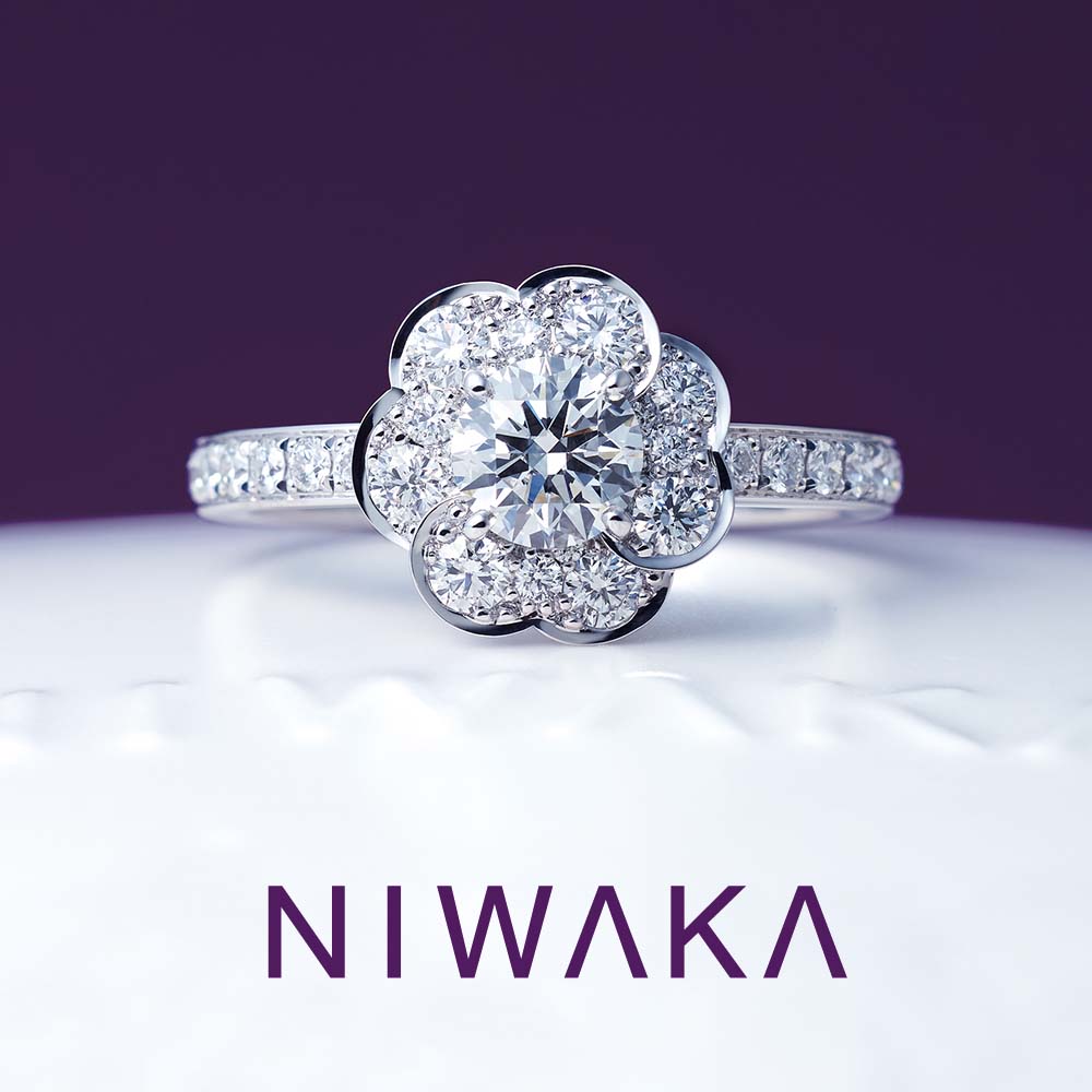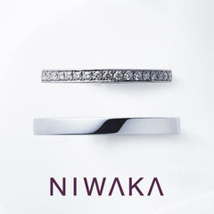 千二百年の歴史を持つ京都で誕生したNIWAKA。そこで育まれた感性から生み出されるジュエリーには、世界を魅了する日本の美意識が息づいています。 NIWAKAのすべてのリングにコンセプトと名前があり、それらがリングという小さな世界の中で緻密に表現されています。どの角度から見ても美しいリングのフォルム。洗練されたデザインに存在感ある輝きのダイアモンド。美しく重なる重ね着け。細部までのこだわりは、ハイジュエリーも手がけるジュエラーとしての誇りです。ふたりの描く未来と重ねながら、特別なリングを見つけて下さい。