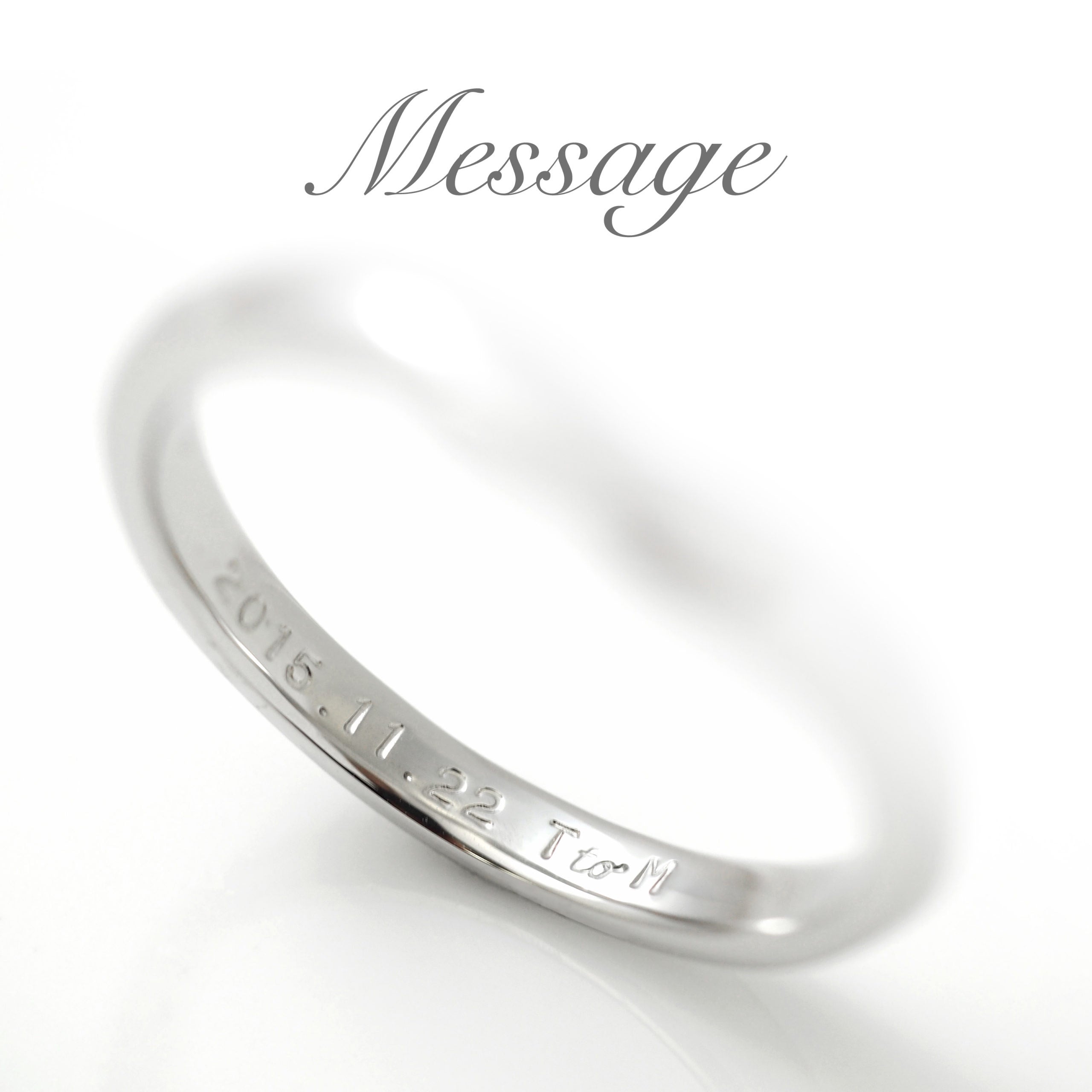当店ではいつでもお互いの愛を感じあえるように、婚約指輪・結婚指輪の内側に無料でメッセージを刻印することができます。