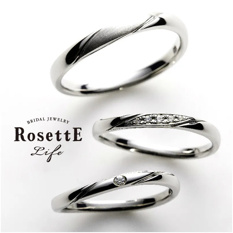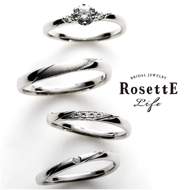 イングリッシュガーデンをテーマにクラシカルなデザインに仕上げた《ロゼット》のブライダルリング。 指輪ひとつひとつに冠されているのは「しずく」「月あかり」「花冠」「小枝」など、自然をモチーフにした名前。 それぞれのデザインに秘められた物語が、 ふたりのラブストーリーをよりロマンティックに 彩ります。 “RosettE”はヨーロッパで古くから伝わるリボンの勲章のこと。尊敬と愛を込めて贈り合うロゼットは、ブライダルリングにふさわしいテーマといえるでしょう。