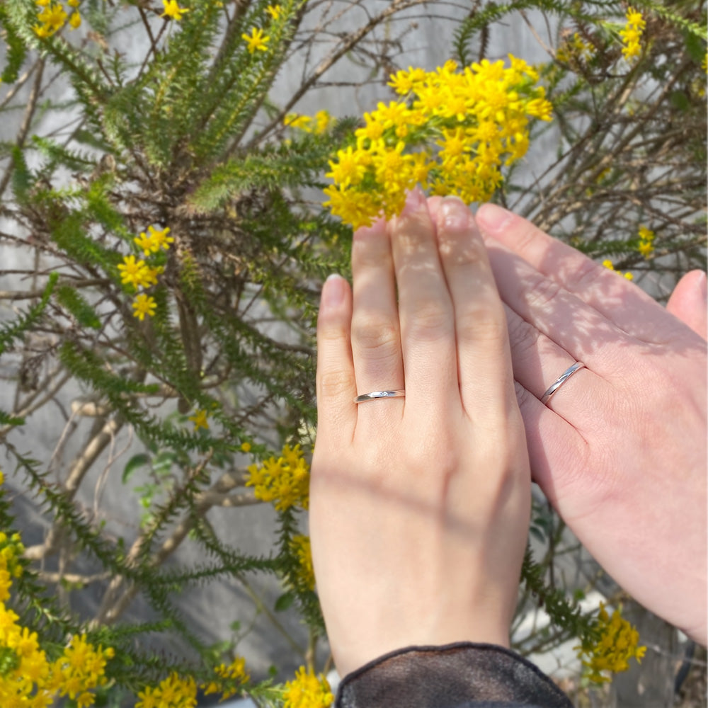 波打った様なデザインが特徴のマリッジリング。一見、全体がつや消しのように見えますが、よく見てみるとポリッシュとのコンビネーションに。質感も高いリングです。