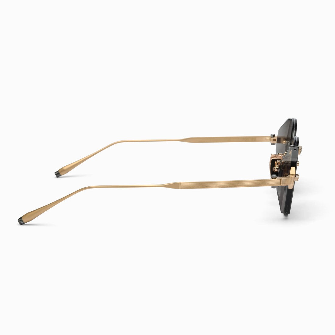 アセテートのサイドシールドはナイロン糸を使用して細心の注意を払って固定されており、レンズがサイドカップ内にしっかりと保持されます。フラットなテンプルとテンプルチップの丸みを帯びたデザインとのコントラストが印象的で、フレームの近未来的な魅力をさらに高めています。