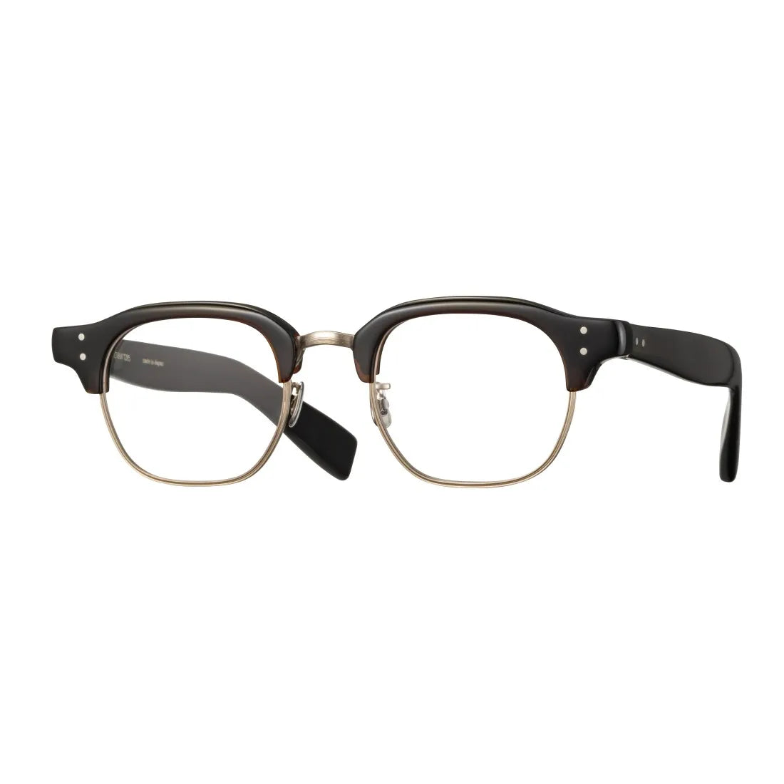 [645]の系譜に連なるモデルとなる[649]はボリューム感はそのままに、玉型を2023SSモデル[343]のスクエアシェイプにしたタイプ。ブランドのシグネチャーパーツであるミリタリー丁番は、間隔の離れた2PINの新規パーツを用い、フロントとテンプルは合口メタルのオフセット設計という特徴的な構造。