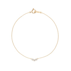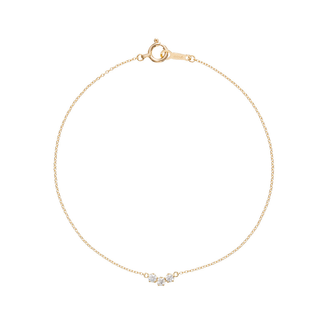 3つのダイヤをあしらったシンプルながらも存在感のあるブレスレット。華奢で繊細なつくりに、ダイヤの輝きが際立ちます。他のモチーフと二重、三重にレイヤードするスタイリングも、幅広く楽しめます。