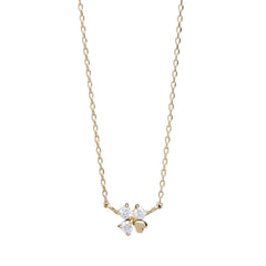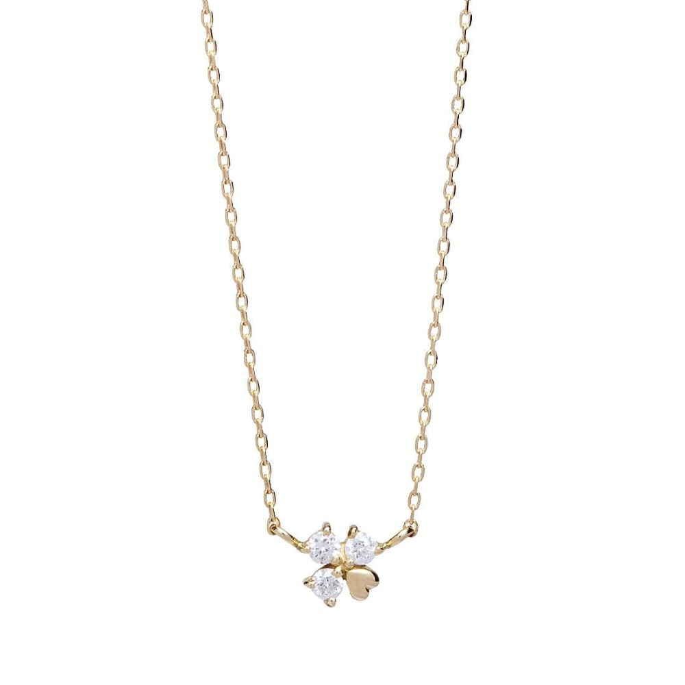 幸せのシンボルであるクローバーがモチーフのネックレス。3枚の葉をダイヤ、残り1枚をゴールドのハートで表現。