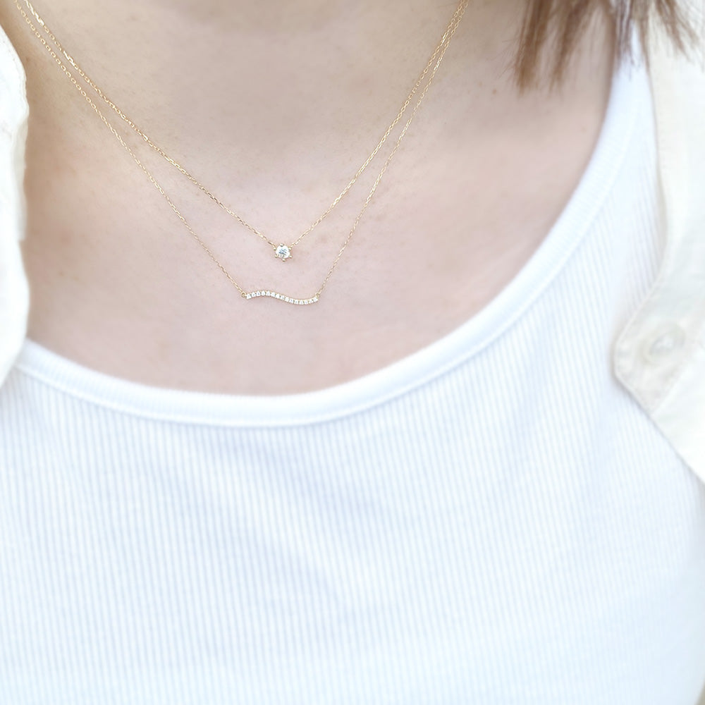 見た目にも大きい1粒ダイヤのネックレスは、その存在感と贅沢感を味わっていただけます。