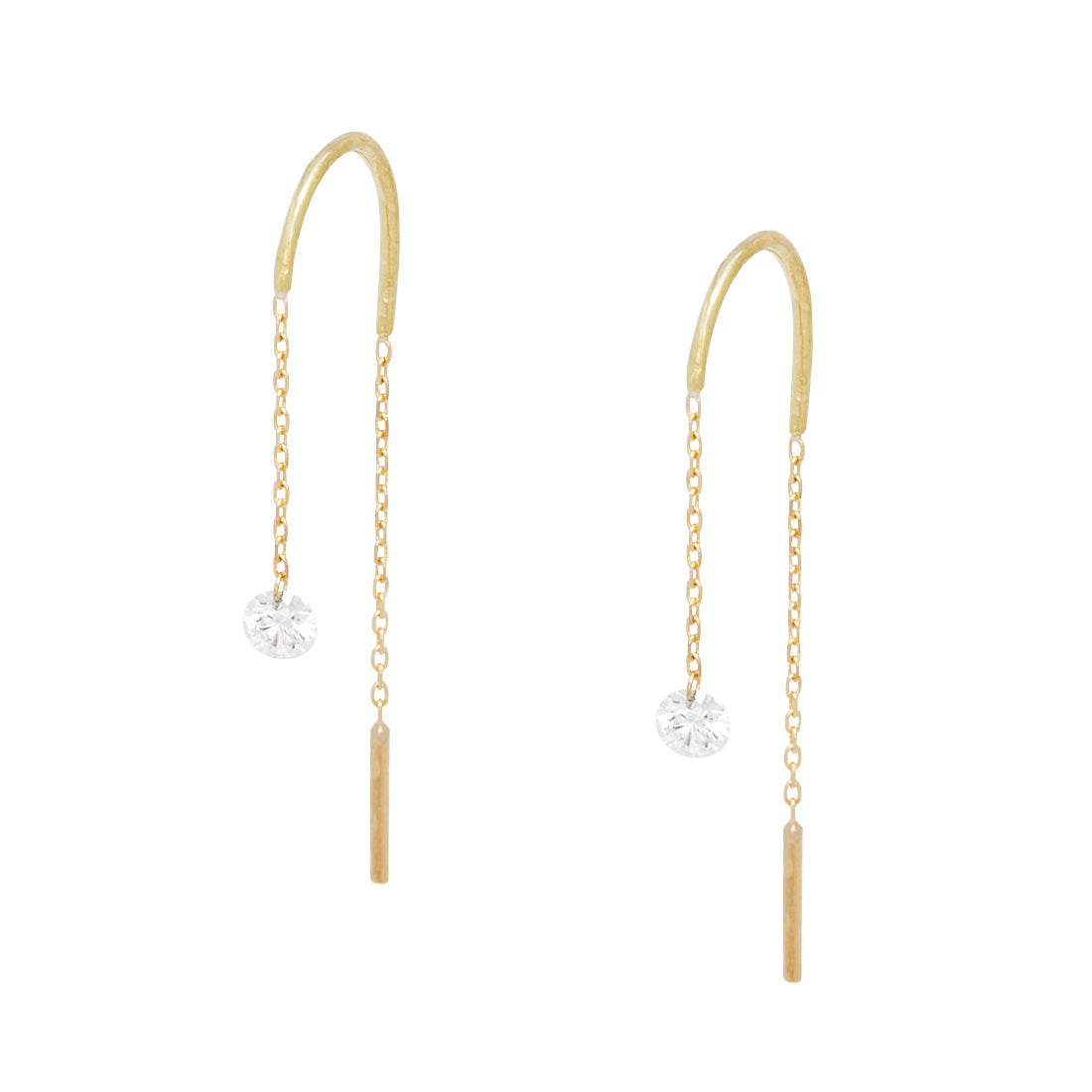 ヌーディーなダイヤが揺れる、お洒落なアメリカンピアス。