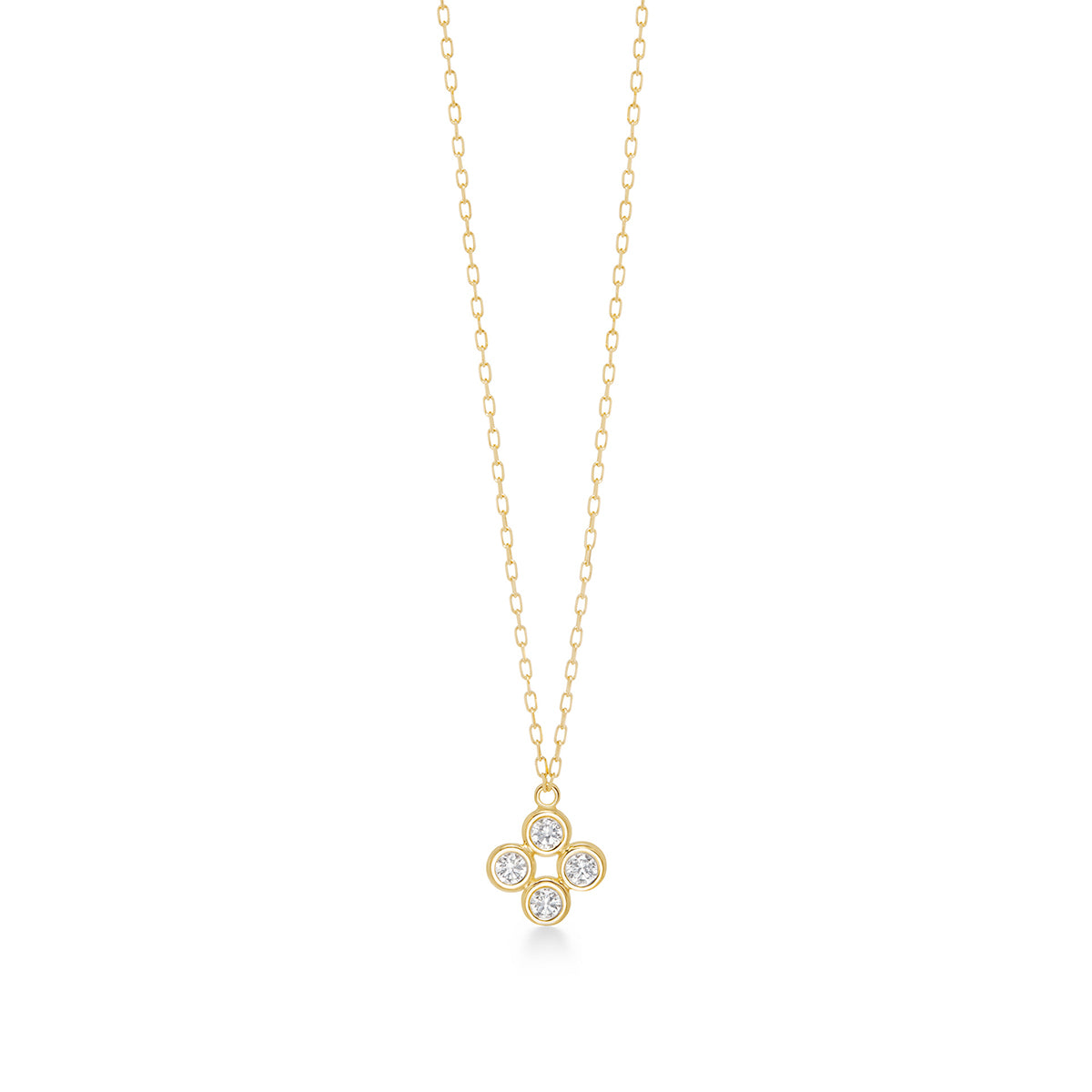 フランス語で「花」を意味する“fleur”(フルール)の名の通り、4石のダイヤモンドを組み合わせて花びらに見立てたネックレス。繊細な花びらのような透明感と、ステンドグラスのように見える幾何学的な花模様が特徴です。