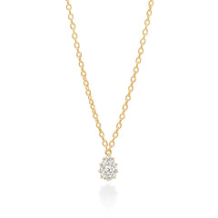 ハートやイニシャルなどのパヴェシリーズのネックレスとの重ね着けもおすすめだが、一つだけでシンプルに着けていただきたいネックレス。