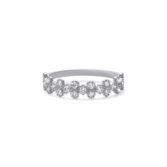 小花をイメージしたリング。手元にダイヤの小花が咲いているかのような、爽やかでフェミニンなデザイン。職人の手仕事による繊細な彫刻に、気品が感じられます。